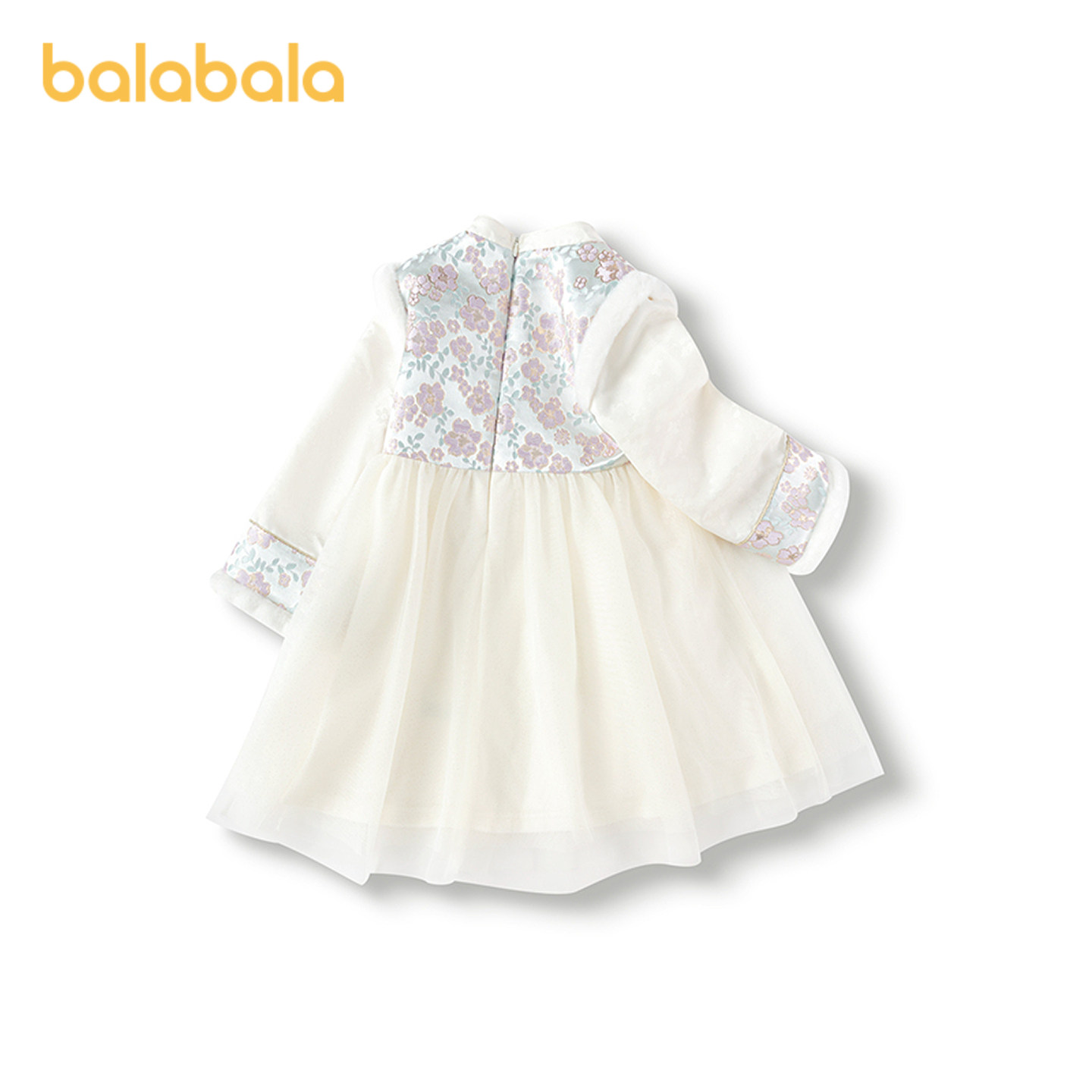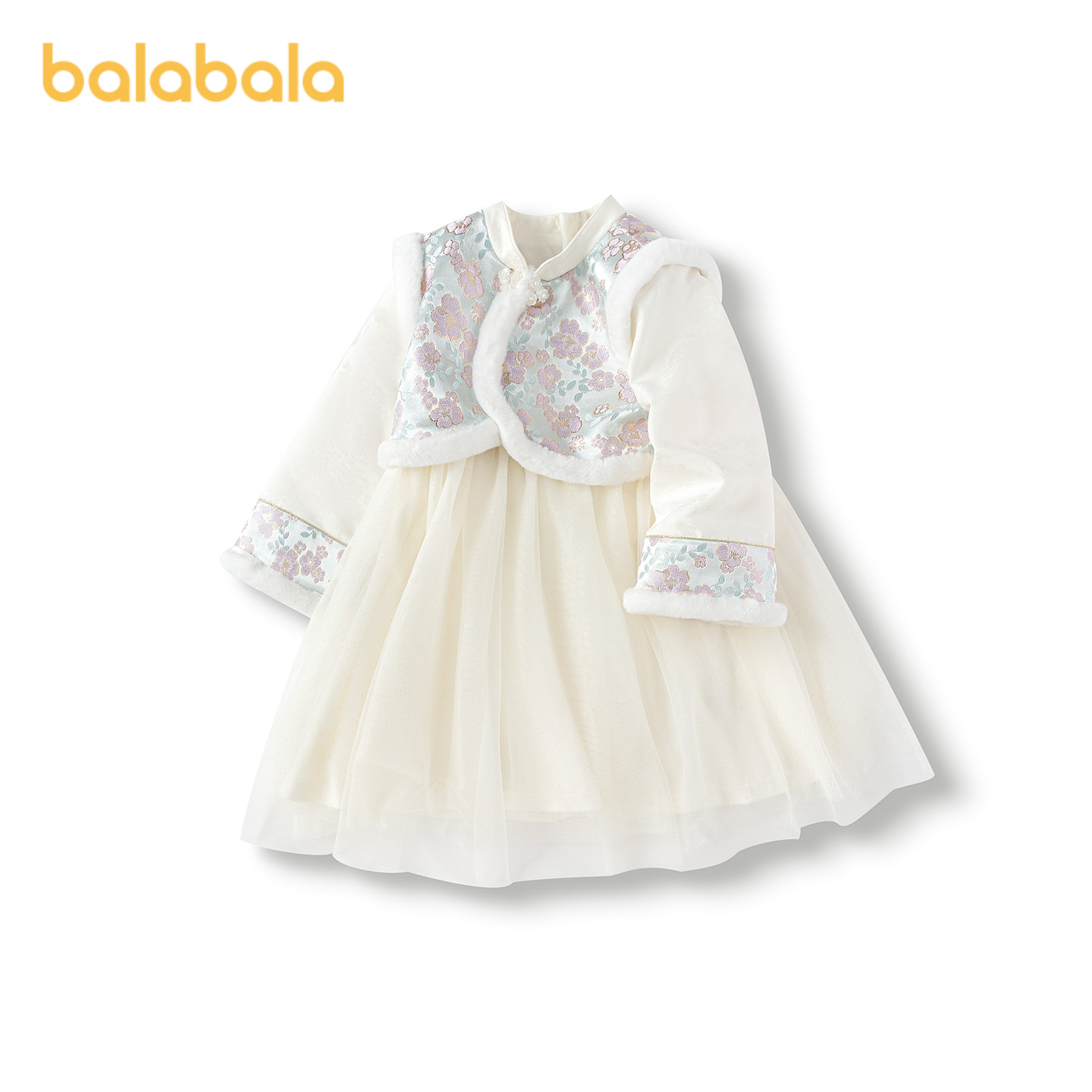 巴拉巴拉女童国风连衣裙秋冬网纱假两件裙子小童洋气中式甜美提花