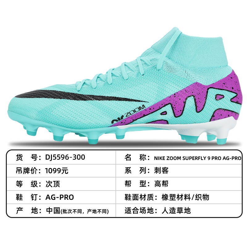 小胖哥耐克刺客16次顶AG短钉ZOOM气垫人草训练高帮飞盘足球鞋男女
