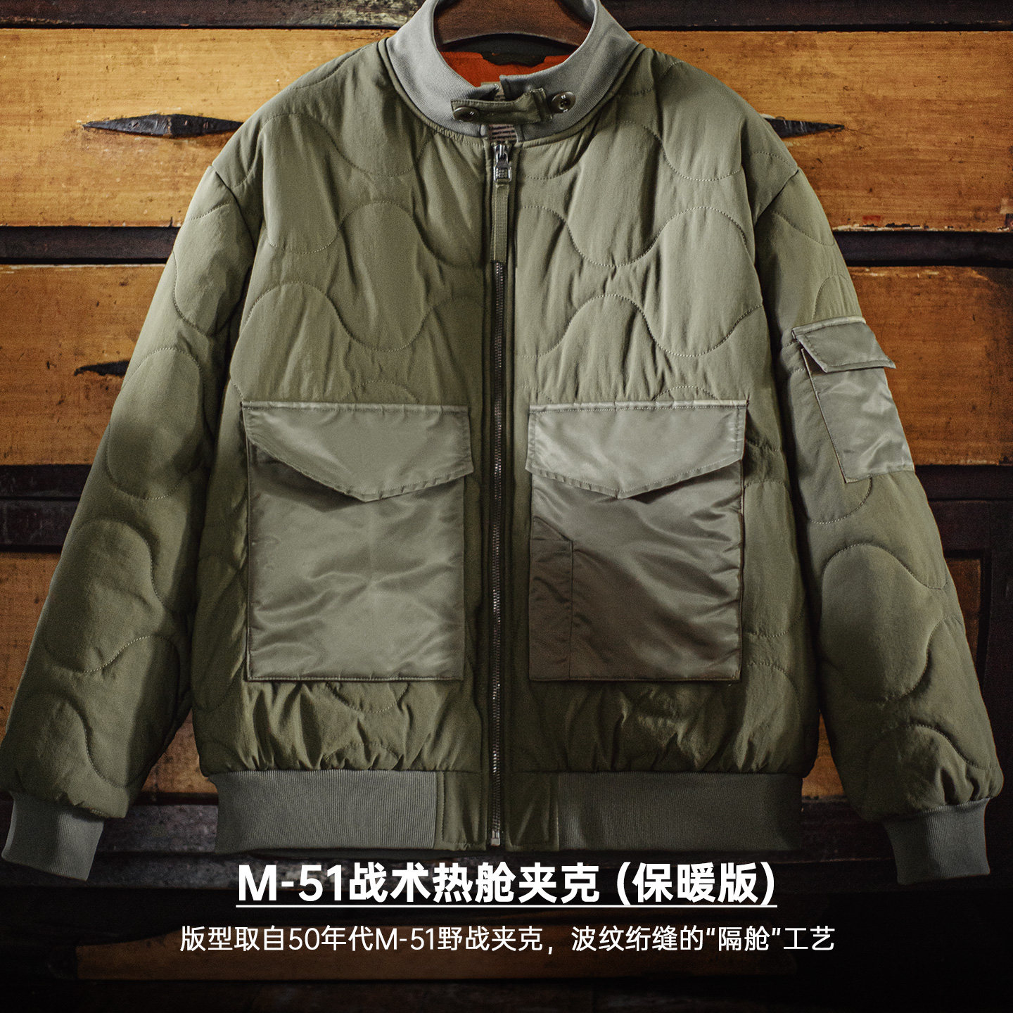 马登工装美式复古M51军绿色夹克大口袋短款立领保暖棉服外套男冬