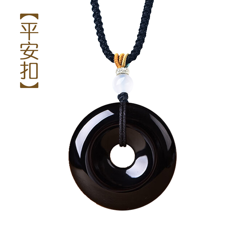 天然黑曜石貔貅吊坠男女士本命年金曜石平安扣项链高档双貔貅挂件
