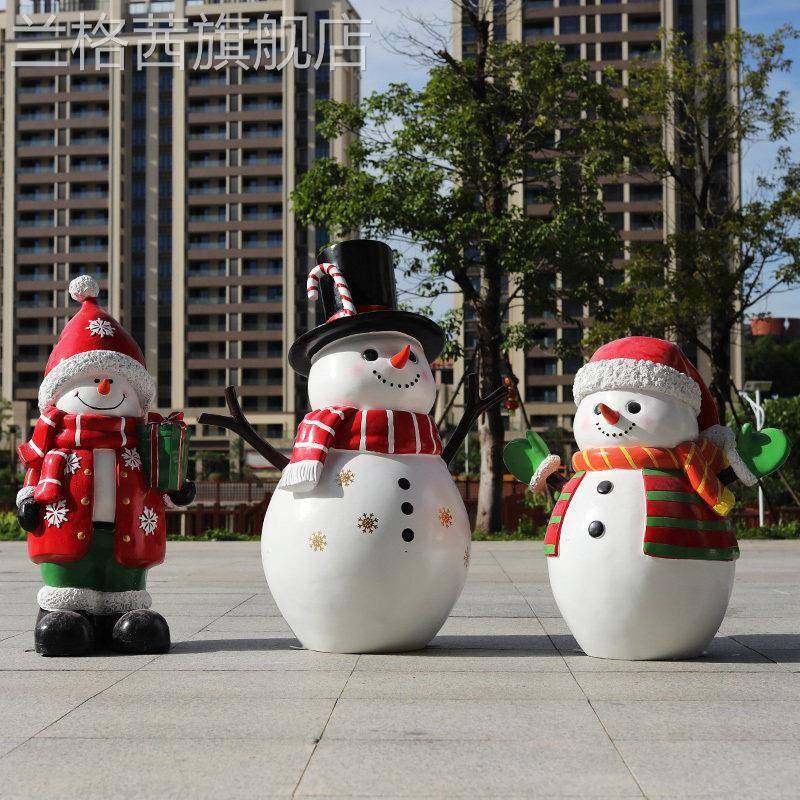 户酒钢外圣件诞卡通雪人雕塑玻璃圣诞老人商场店圣诞节L79197装饰