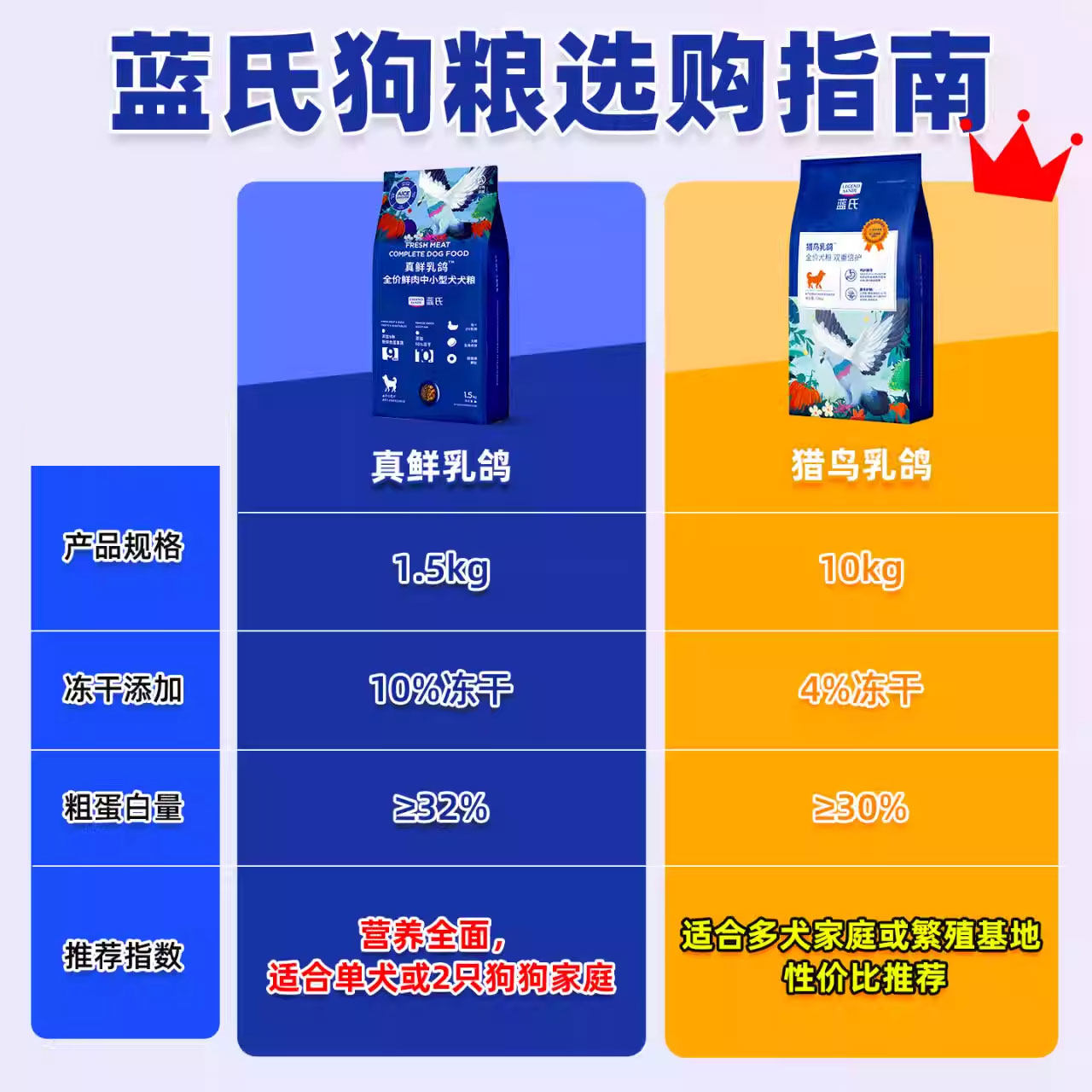 蓝氏狗粮10kg猎鸟乳鸽双重陪护犬粮20斤小中大型犬通用型冻干犬粮