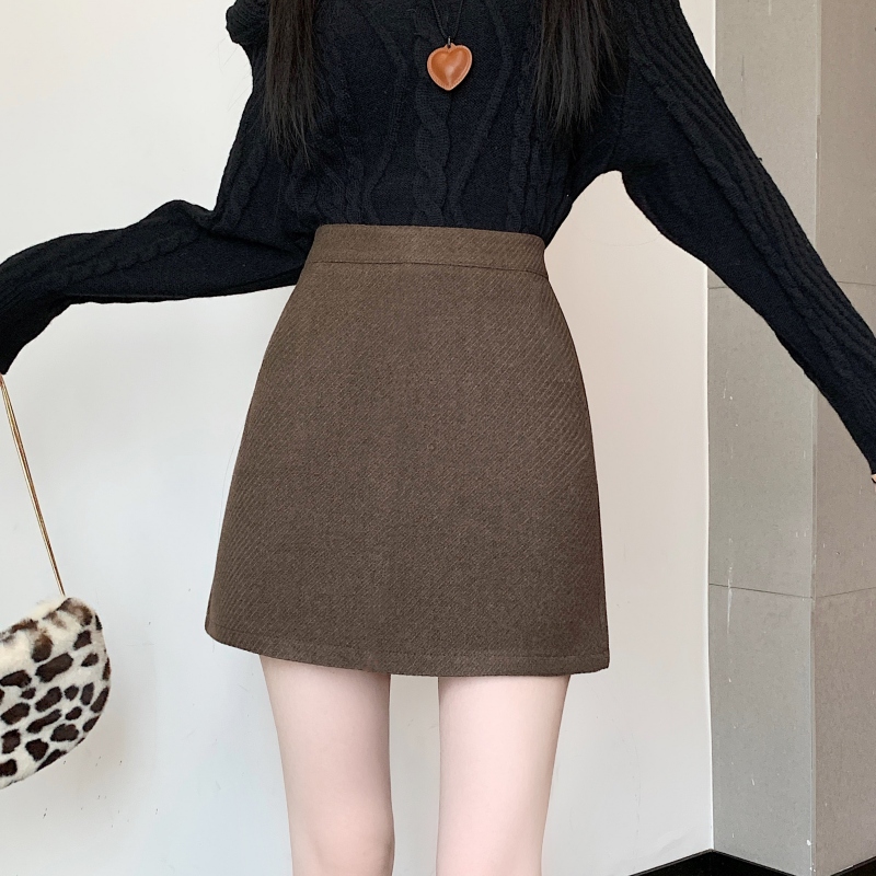 咖啡色毛呢半身裙冬季新款大码a字高腰显瘦包臀裙一步呢子短裙女