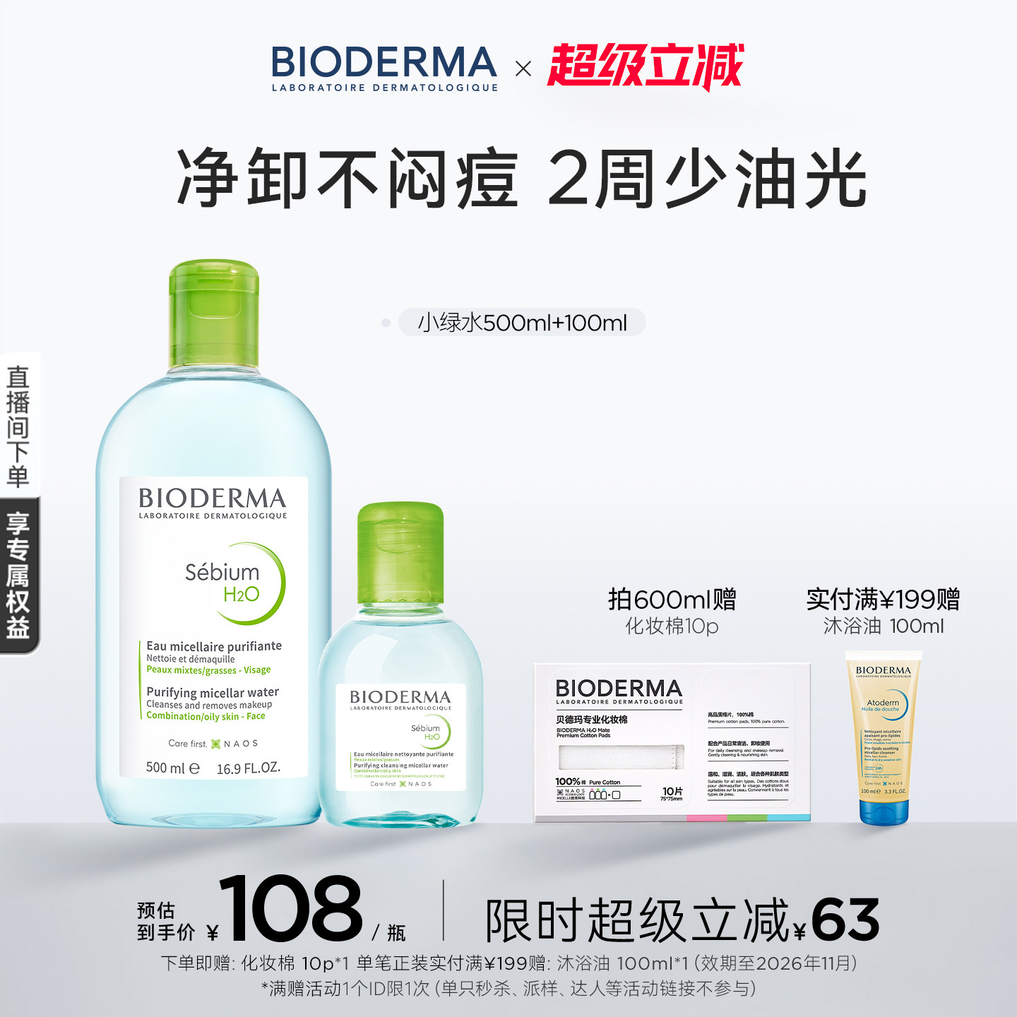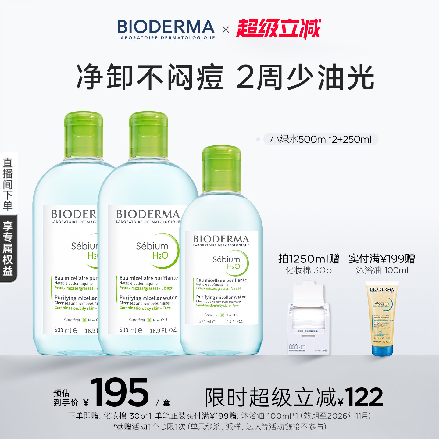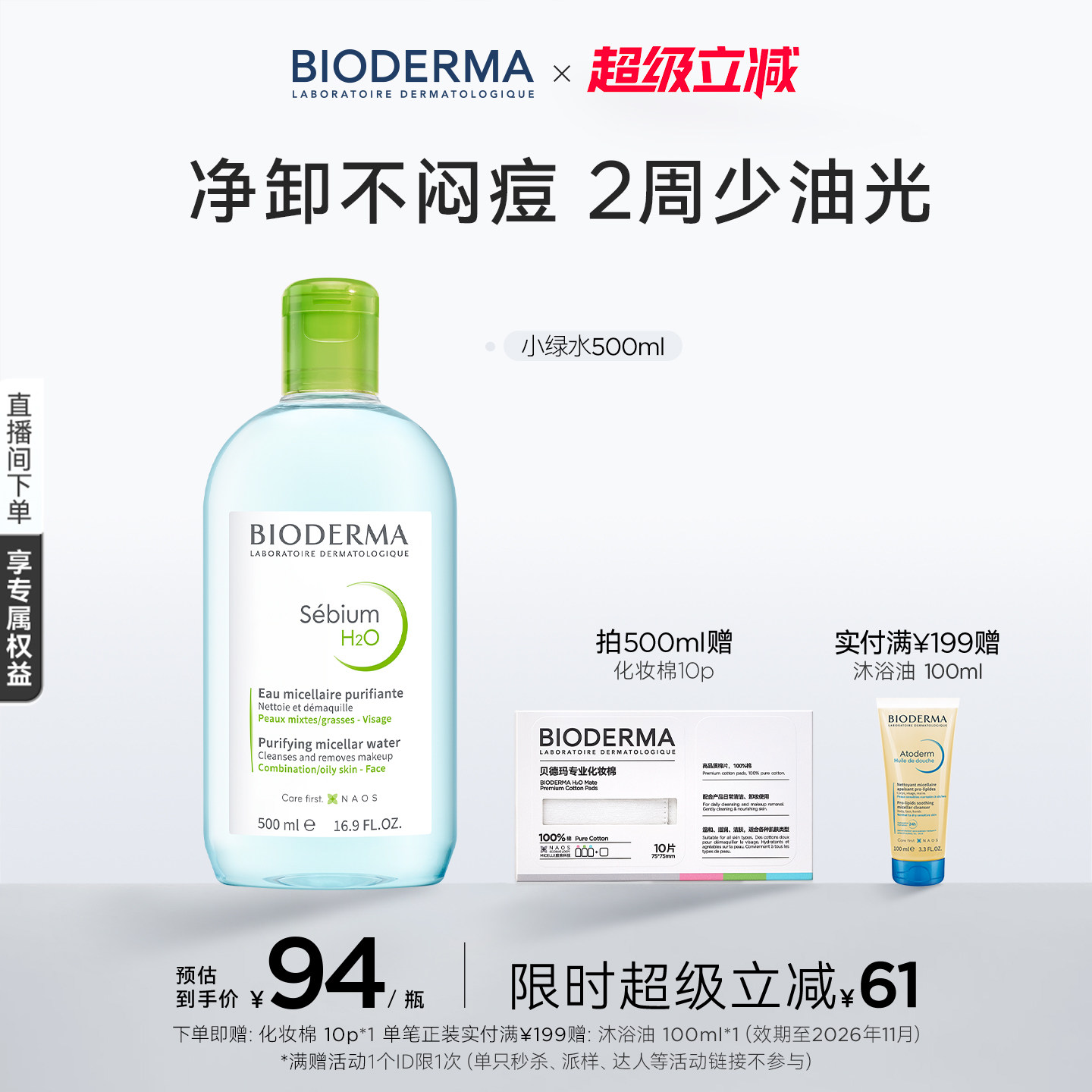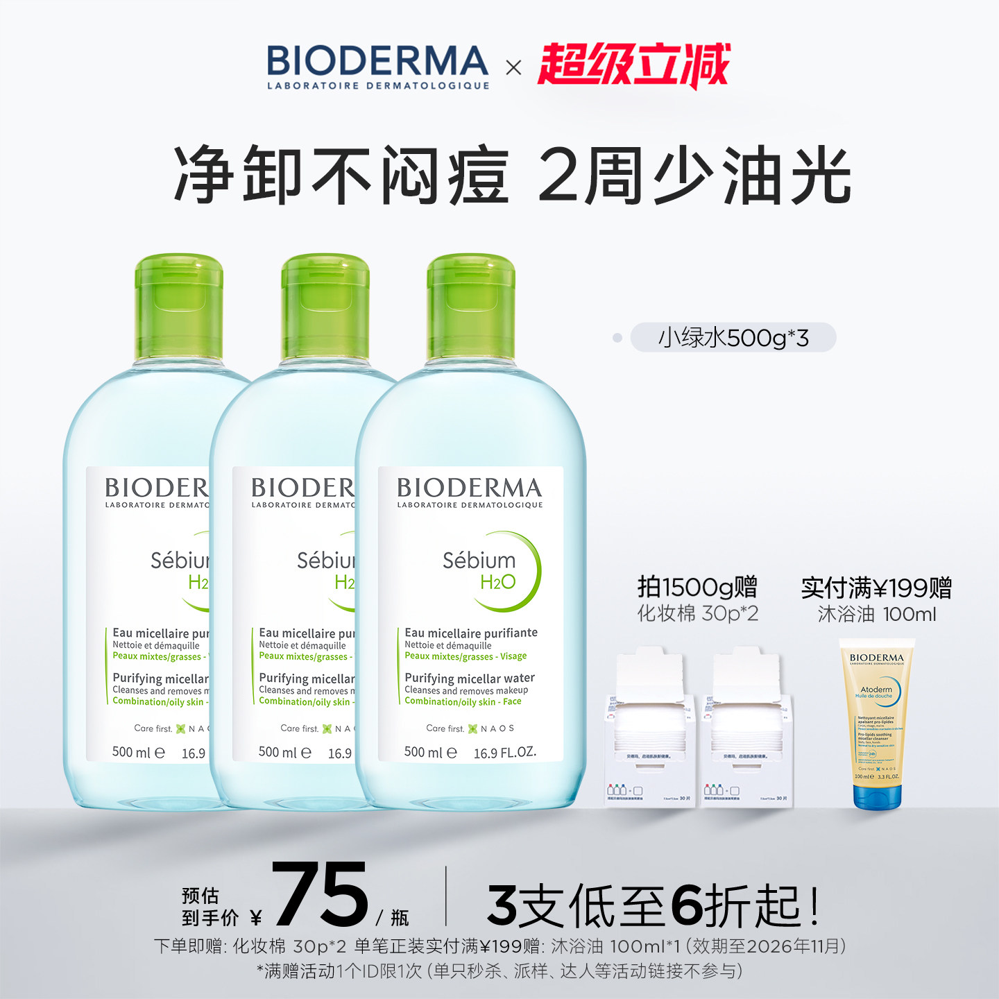 贝德玛小绿水控油卸妆水净澈油皮