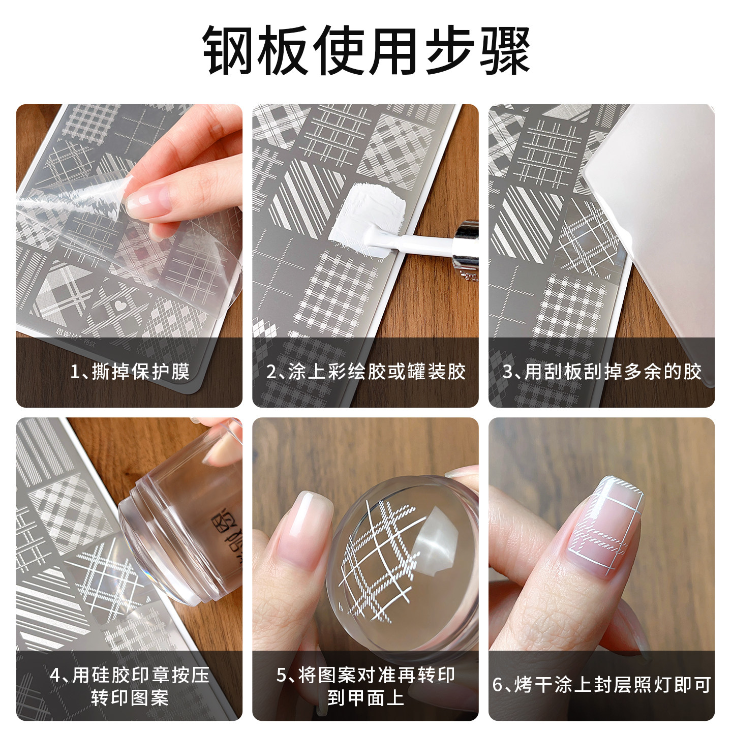 美甲专用印花钢板新款格纹法式线条模板硅胶印章精美图案转印工具