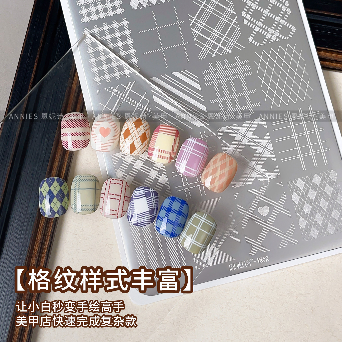 美甲店专用格纹法式美甲印花钢板