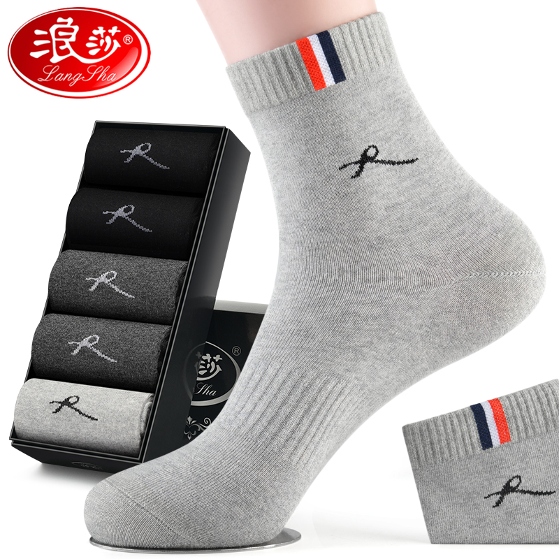 浪莎袜子男士纯棉防臭中筒袜吸汗运动长袜春秋薄款全棉青少年男袜