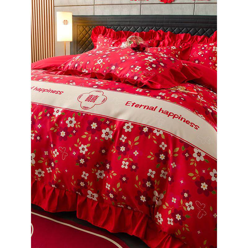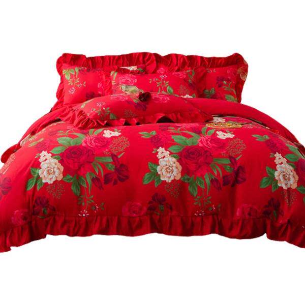 东北大花喜庆四件套亲肤棉喜被加厚床单被套被罩结婚乔迁床品套件
