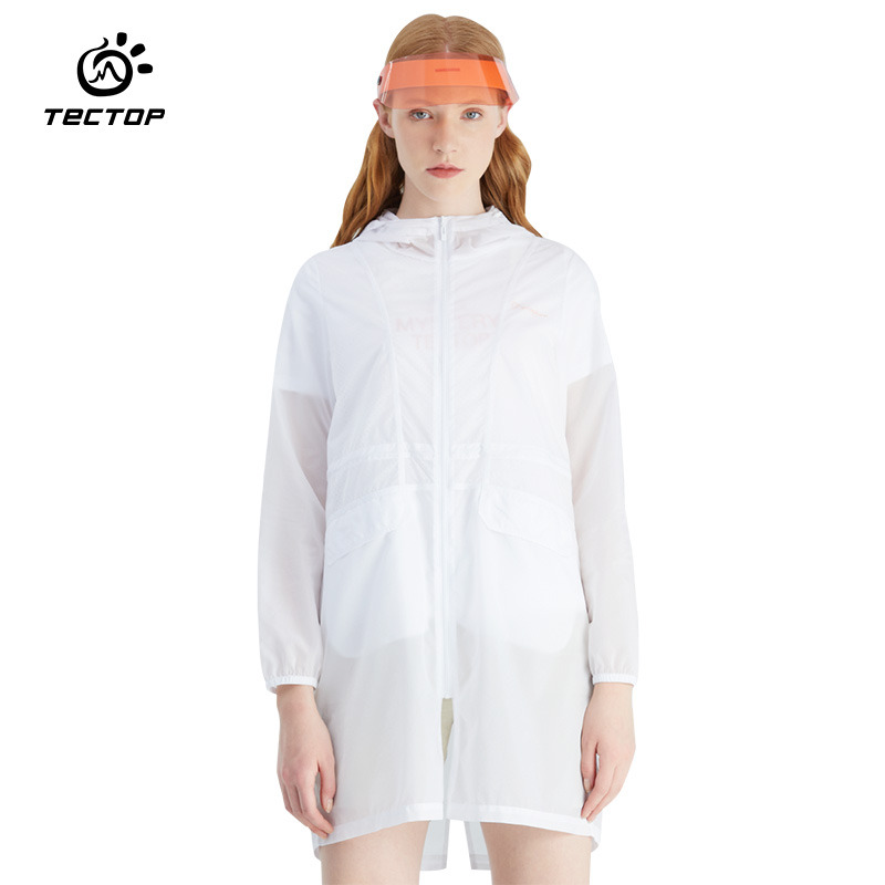探拓夏季户外女士中长款时尚透气皮肤衣旅行运动防泼水薄风衣外套