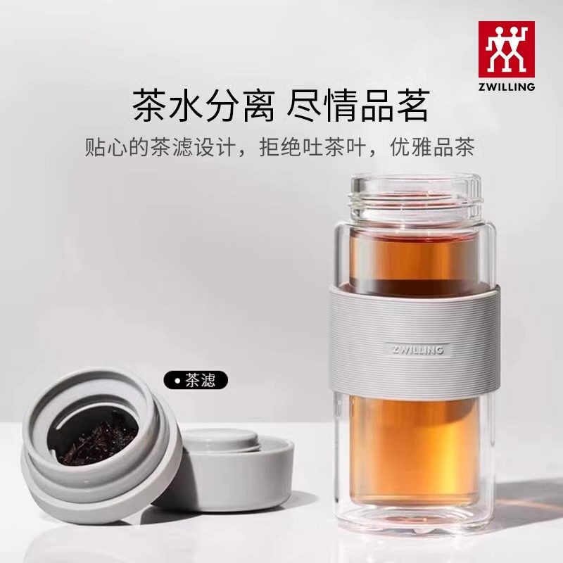 双立人水杯泡茶杯咖啡杯双层防烫隔热玻璃茶滤杯便携杯