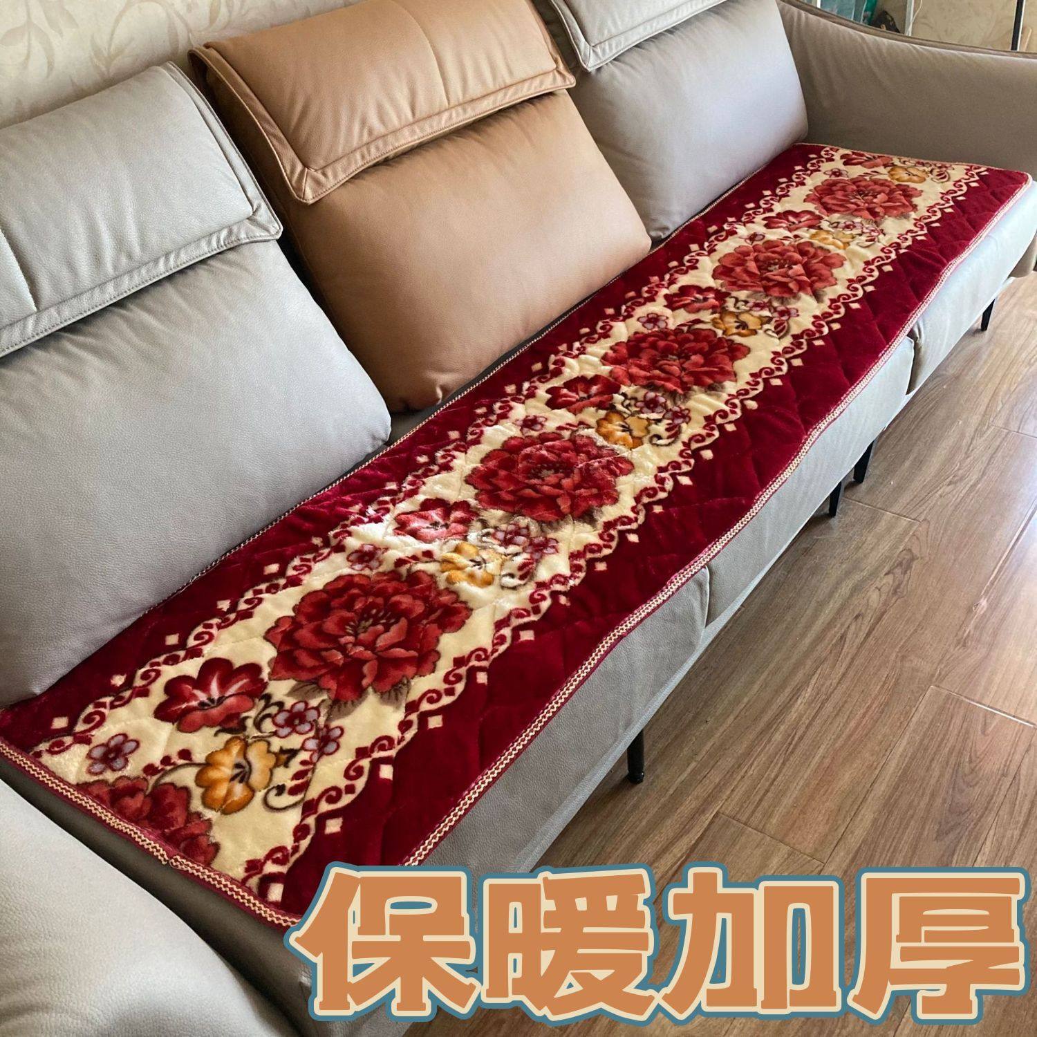 冬天毛毯坐垫实木沙发座垫冬季办公室春秋椅坐垫加厚防滑垫三件套