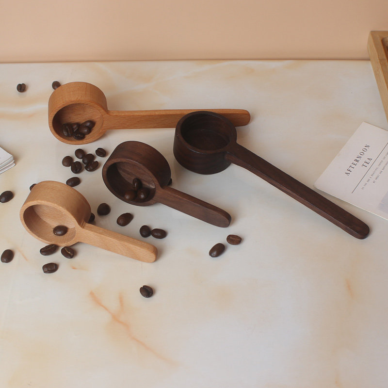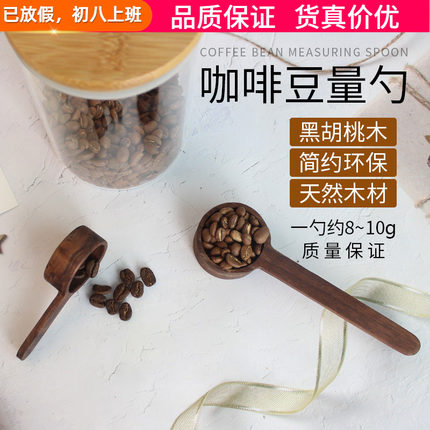 黑胡桃木咖啡量豆勺不锈钢咖啡奶茶粉定量勺 复古实木计量匙8g10g