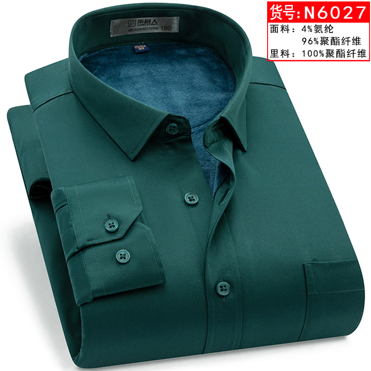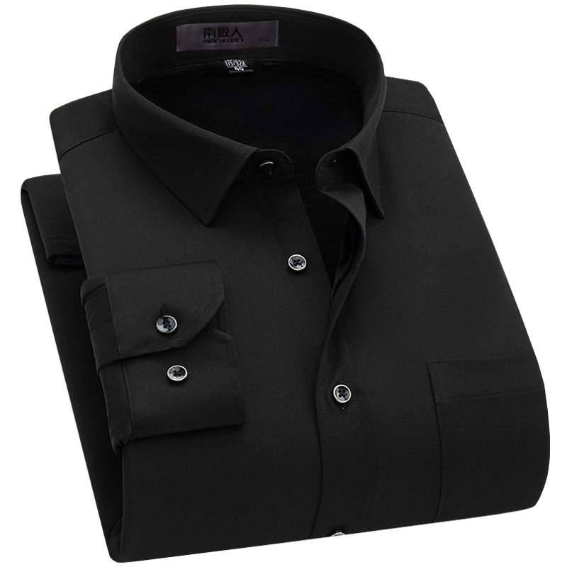 南极人男士加肥加大码黑色保暖衬衫加绒加厚胖人肥佬大号纯色衬衣