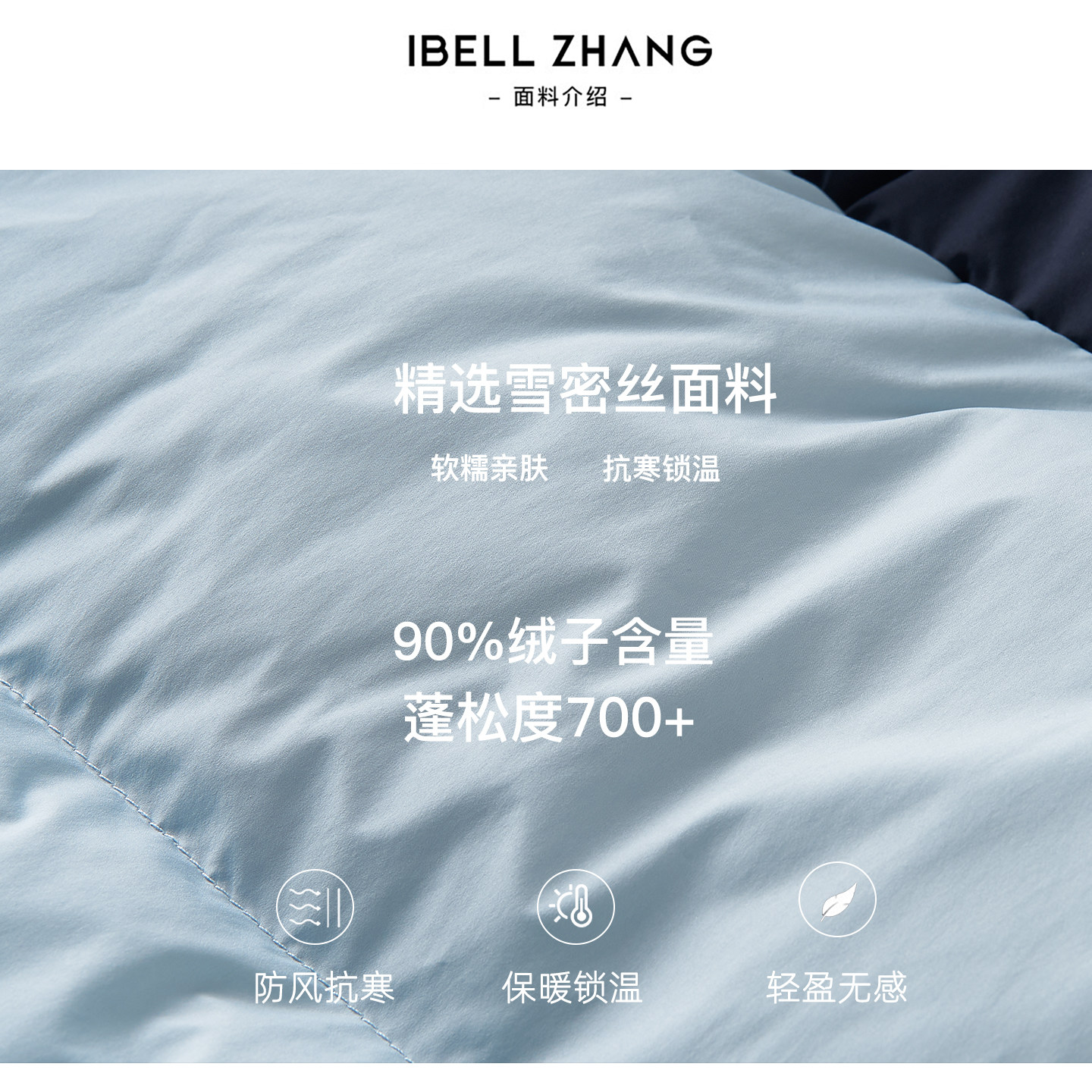 90白鸭绒拼色连帽羽绒服加厚保暖