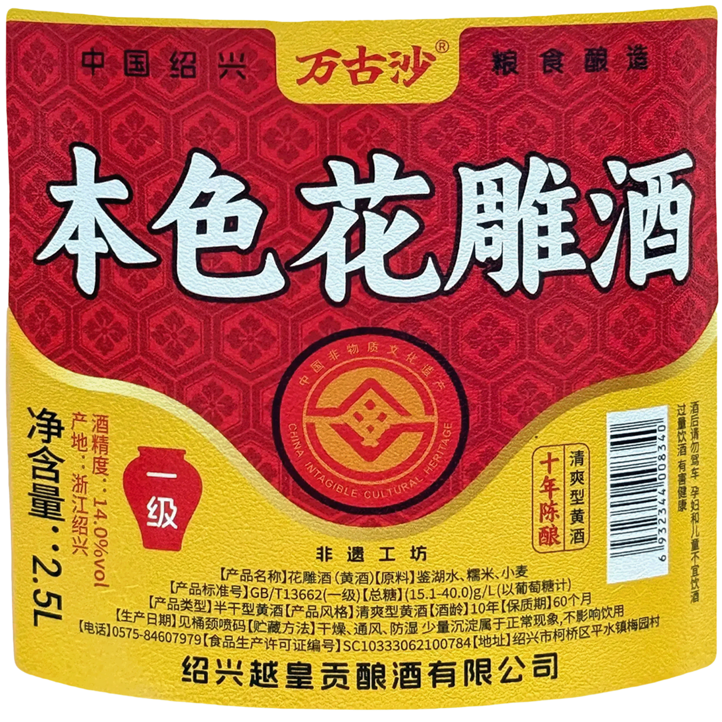 万古沙绍兴花雕酒5斤装纯粮酿造