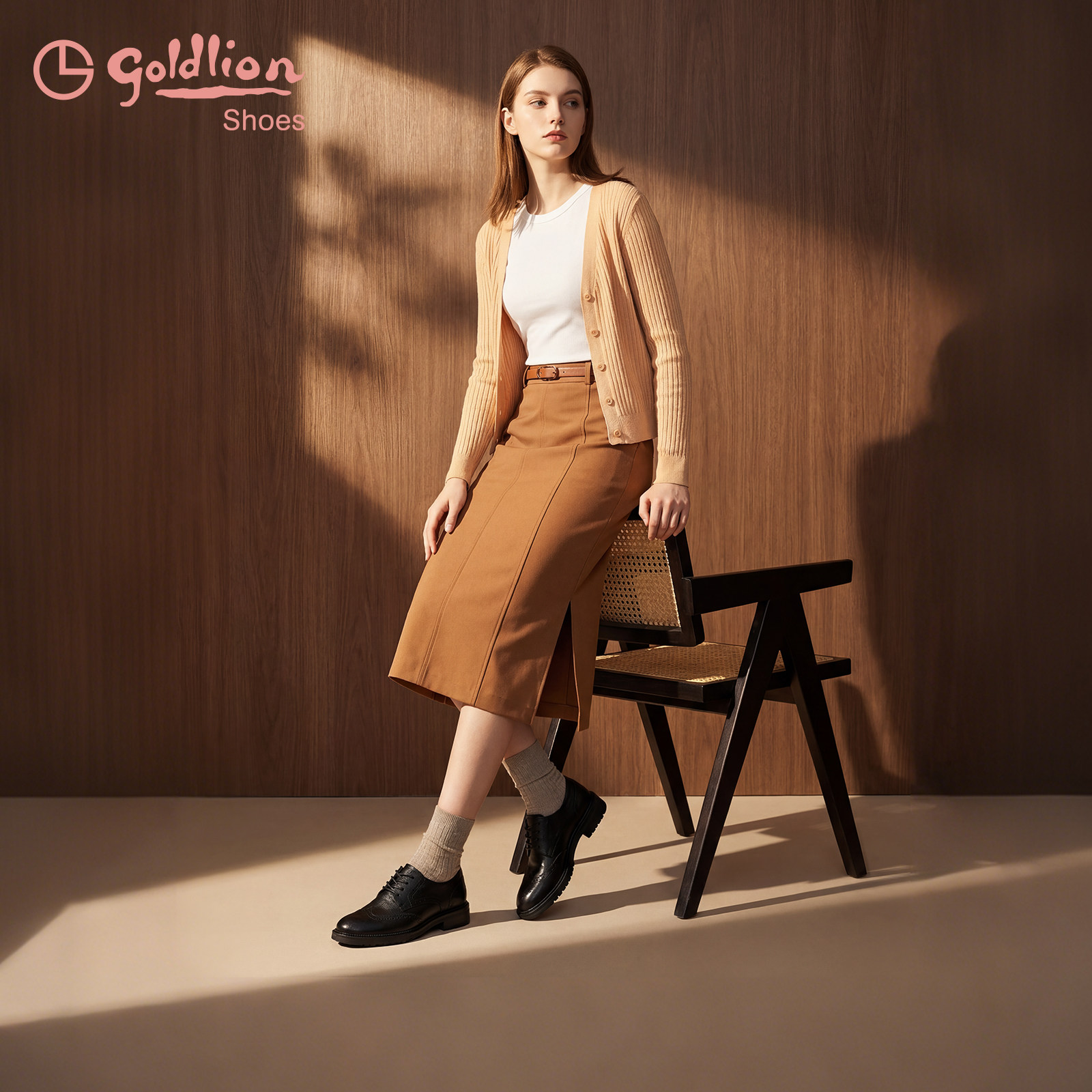 金利来英伦小皮鞋女2025秋季新款女鞋布洛克雕花羊皮粗跟牛津单鞋