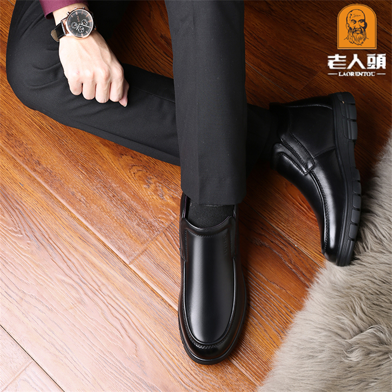 老人头高帮皮鞋冬季加绒保暖棉鞋