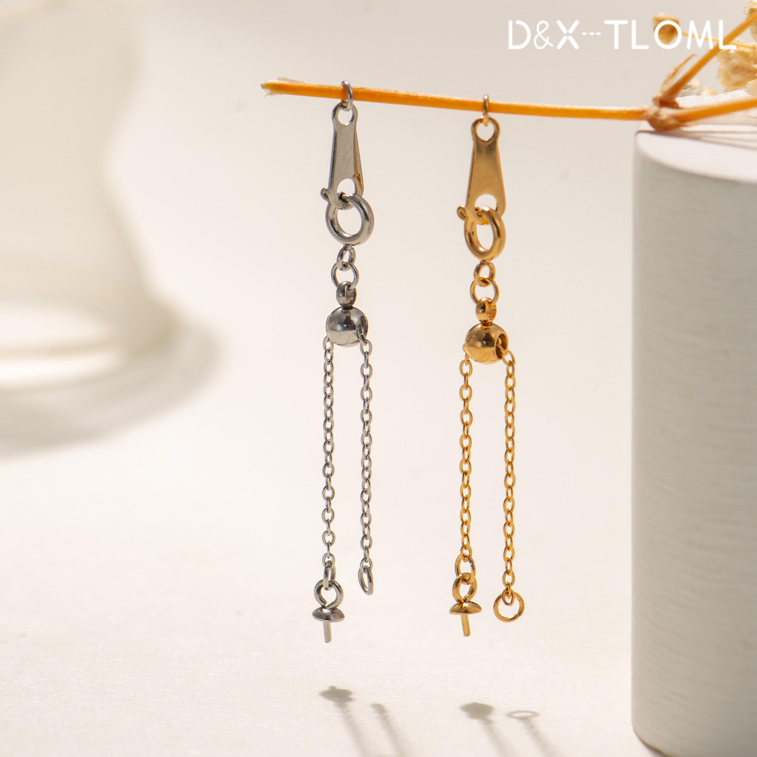 东夏饰品 316钛钢硅胶调节链 炉内电镀18K金镶嵌珍珠弹簧扣抽拉链