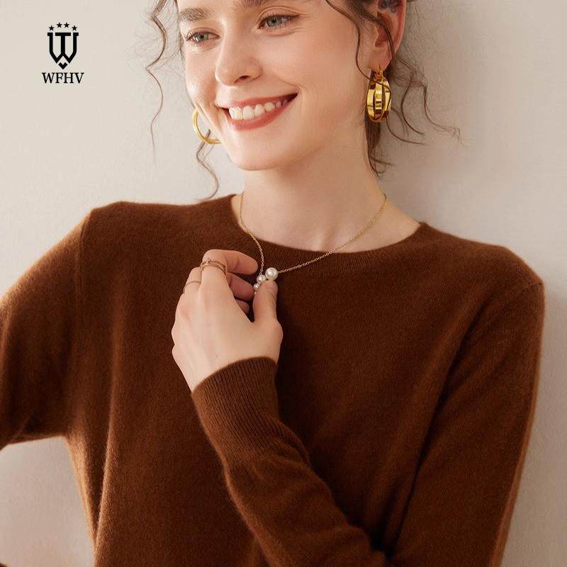 鄂尔多斯市100纯羊绒衫女冬季新款山羊绒毛衣加厚套头打底针织衫