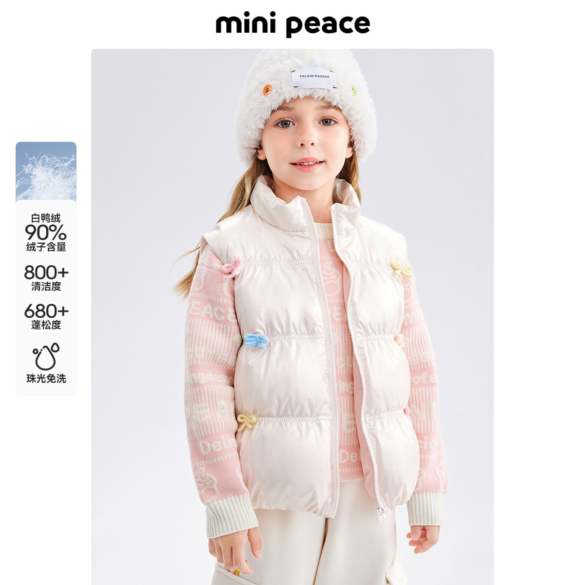 MINIPEACE太平鸟童装女童羽绒马甲外穿冬装珠光亮面免水洗白鸭绒