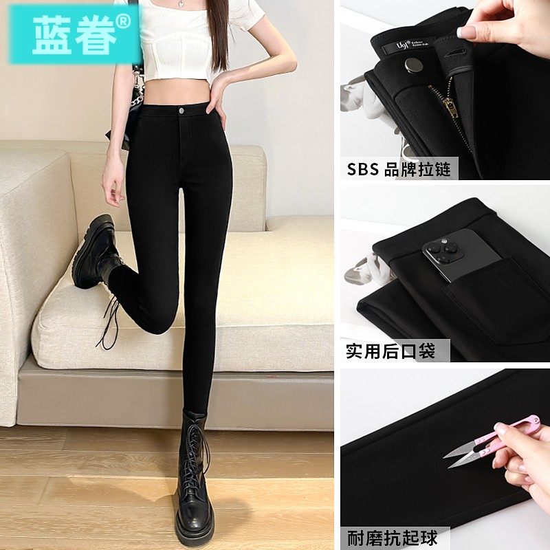 黑色打底裤女秋冬季外穿2025新款高腰紧身显瘦铅笔弹力小脚小黑裤