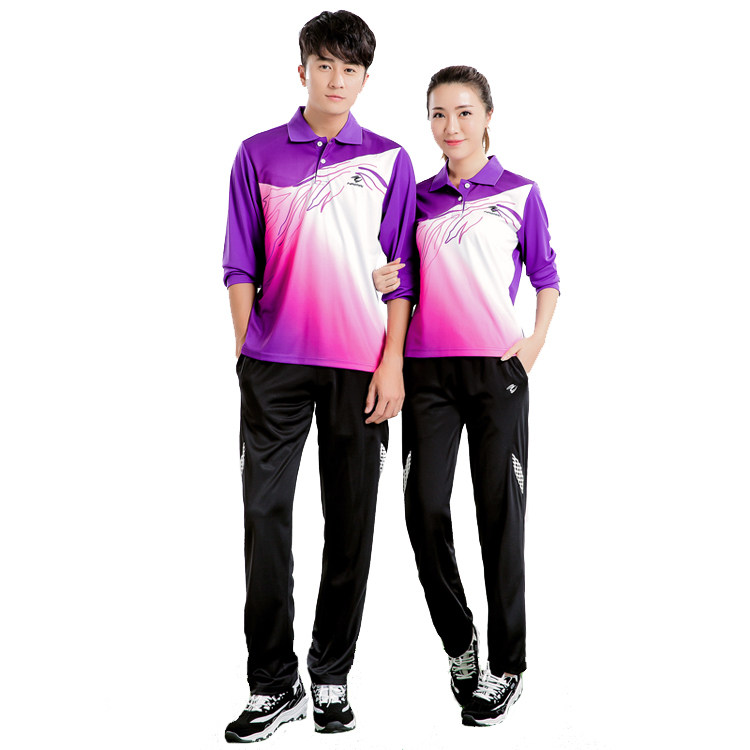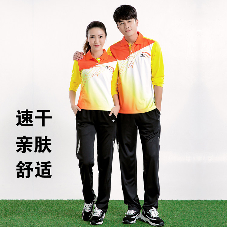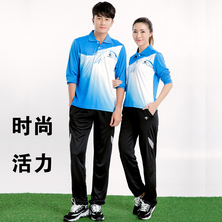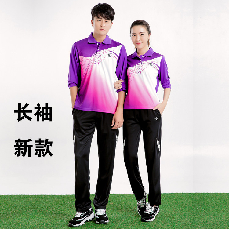 新款秋冬长袖乒乓球羽毛球服套装男女情侣翻领速干运动服装长裤子