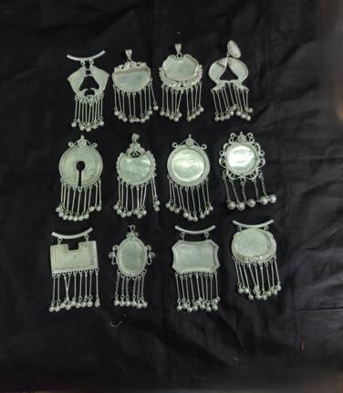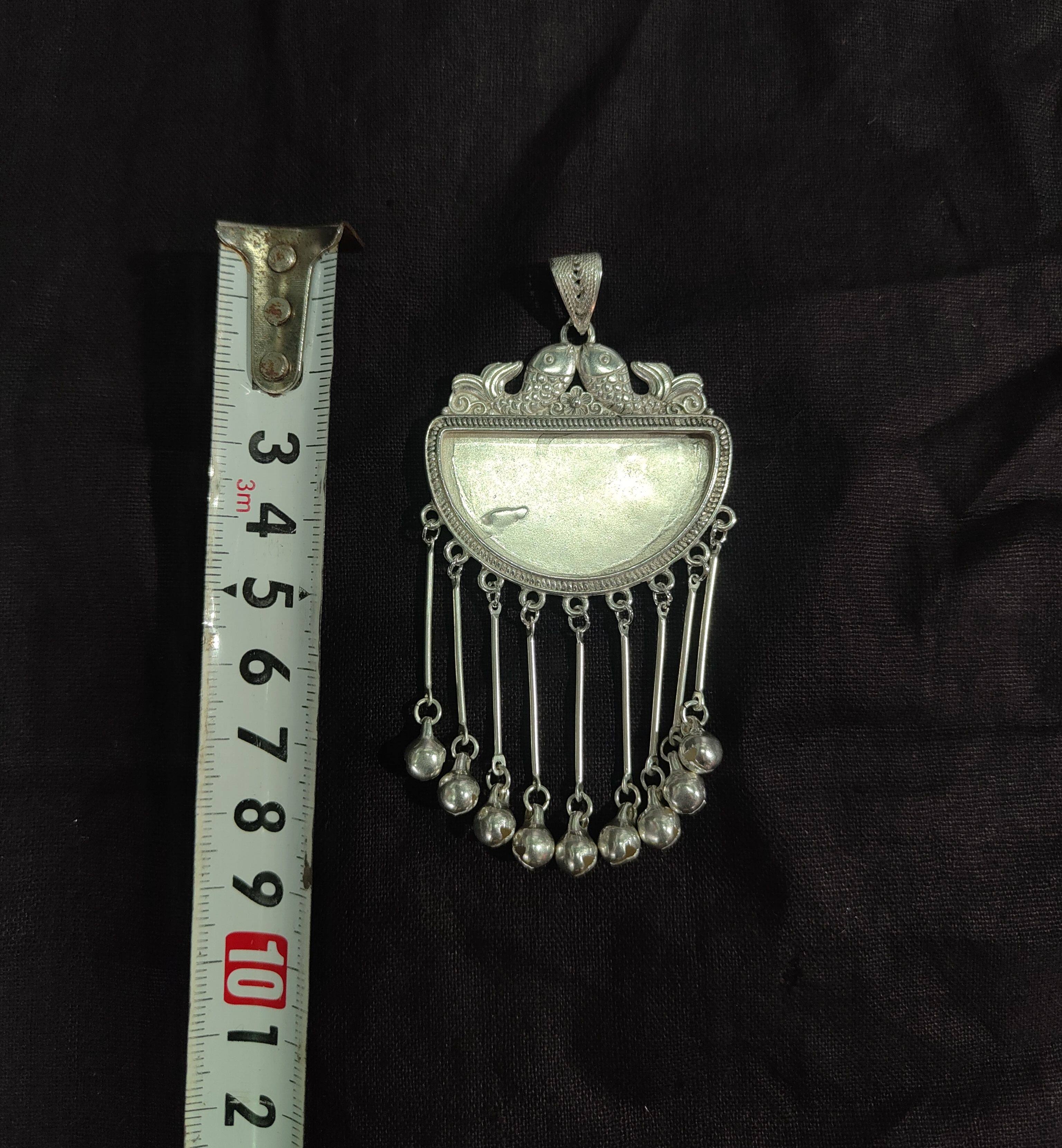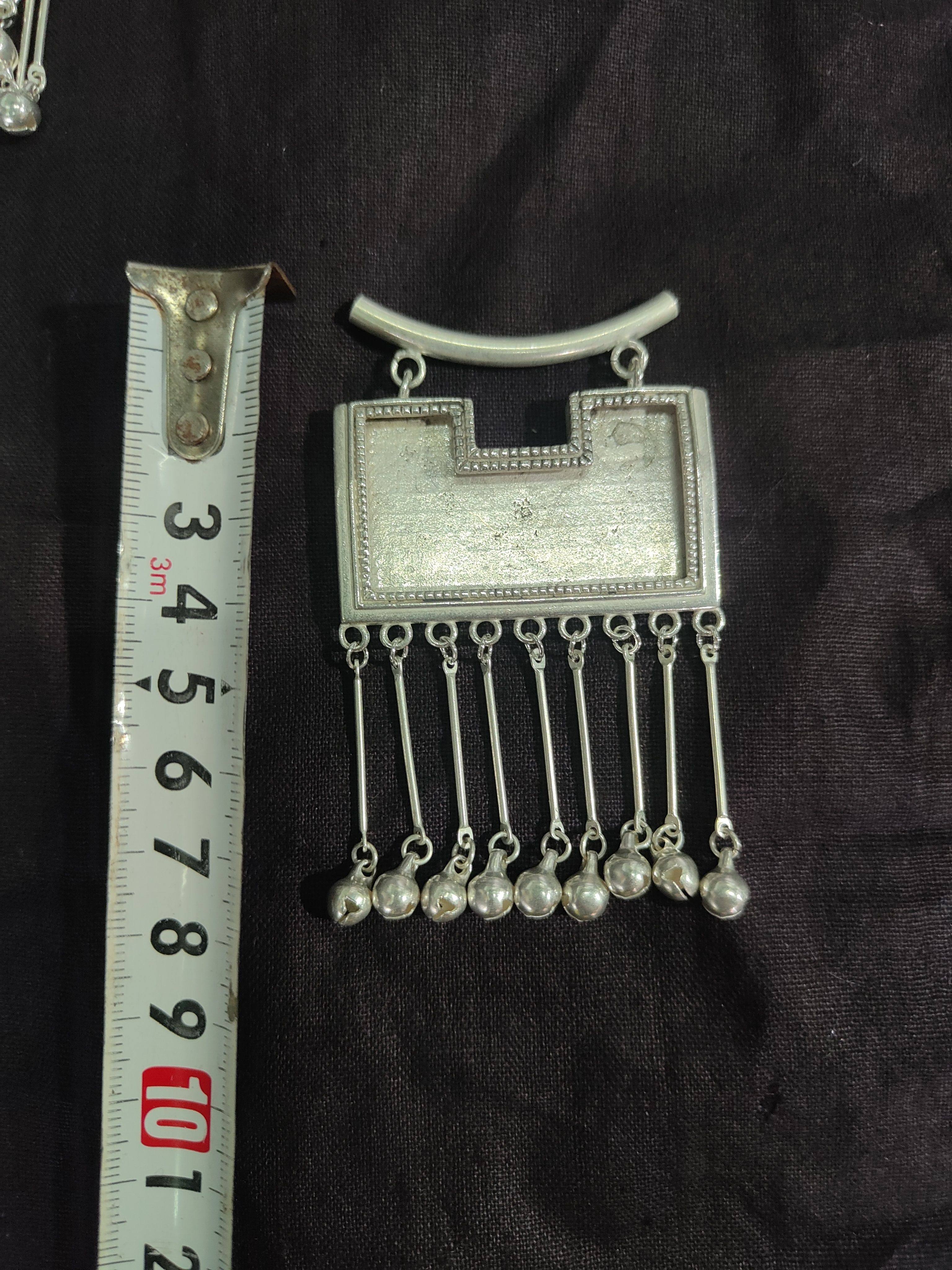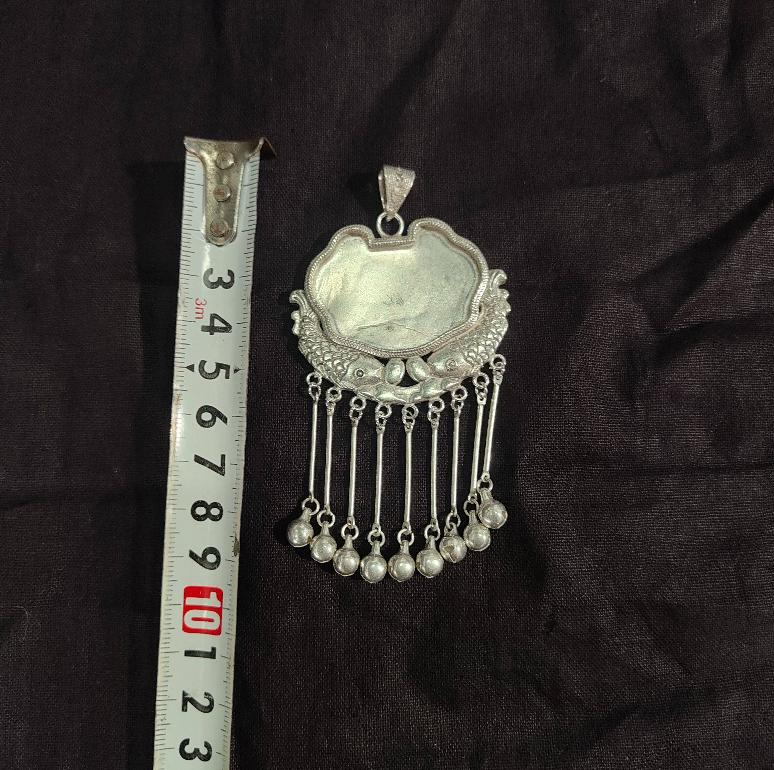 贵州民族风纯手工仿古苗藏银项链挂件吊坠空托多款镶绣长命锁流苏
