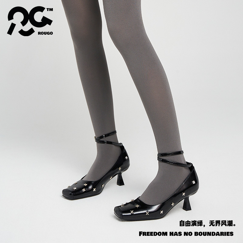 Rougo黑色丝袜80D天鹅绒连裤袜女春秋款厚黑打底裤袜防勾丝不掉裆