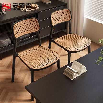 藤编塑料椅子北欧家用可叠放餐椅户外休闲靠背椅小户型扶手书桌椅