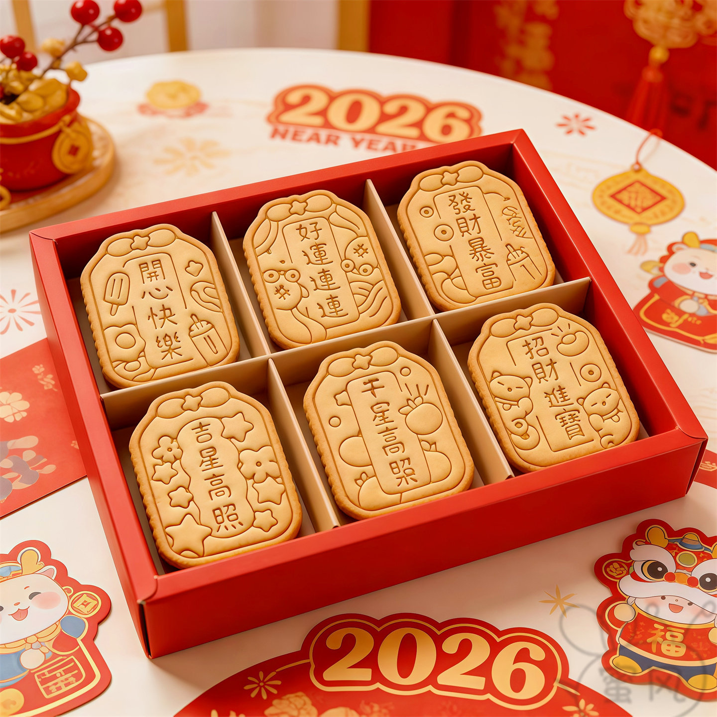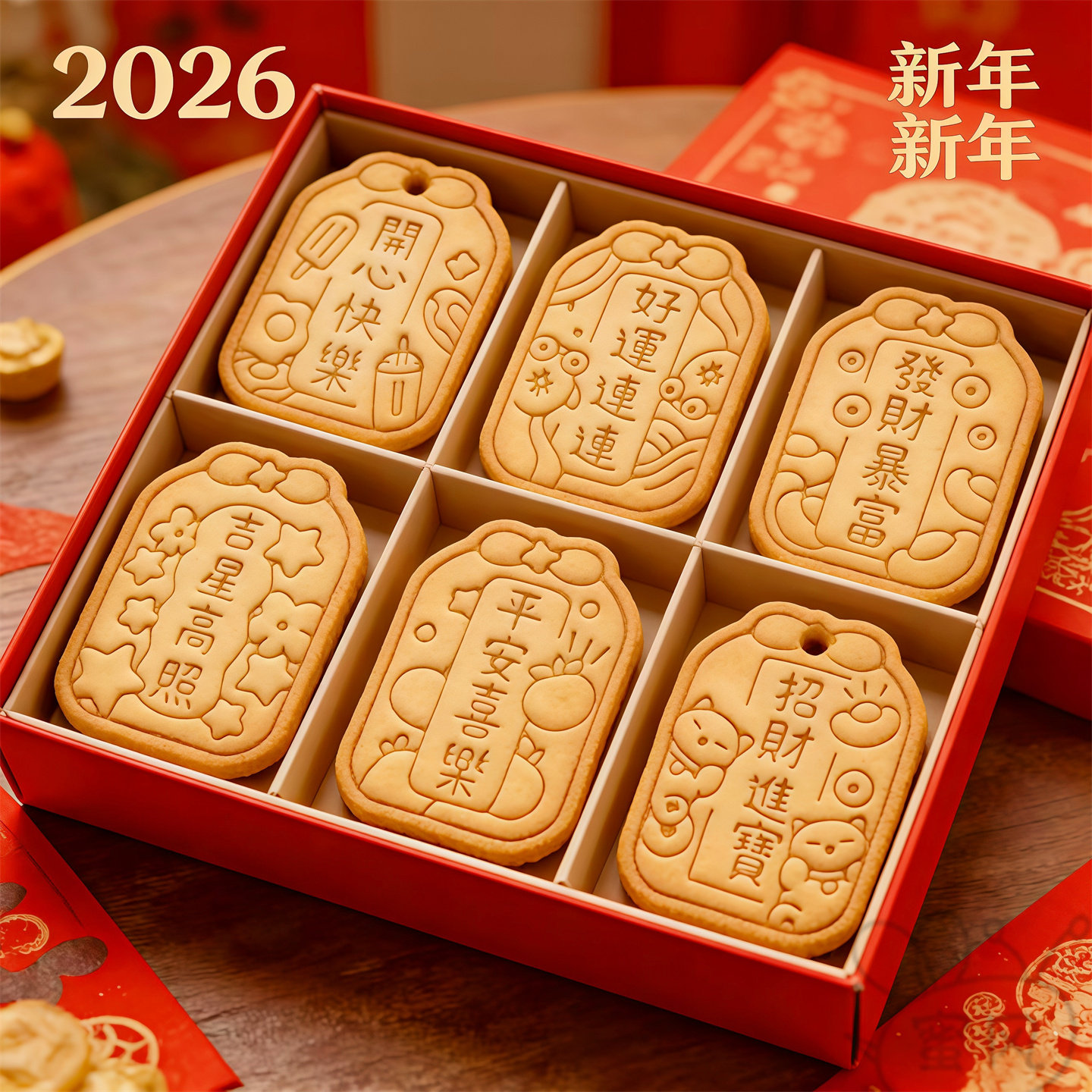 2026新年御守卡通饼干模具心愿祝福平安喜乐按压式烘焙曲奇印模
