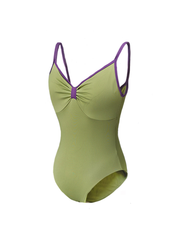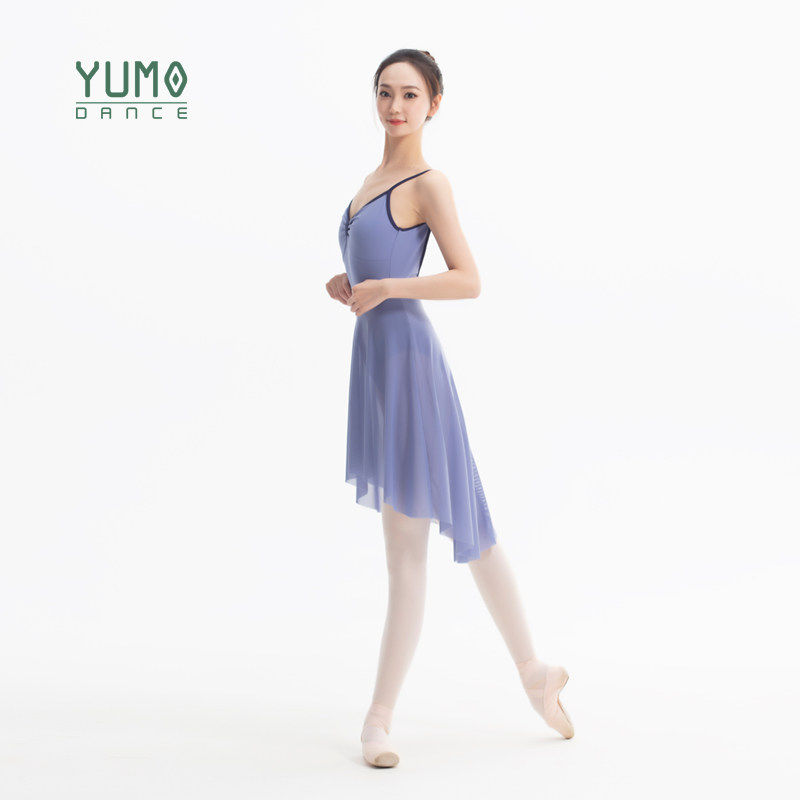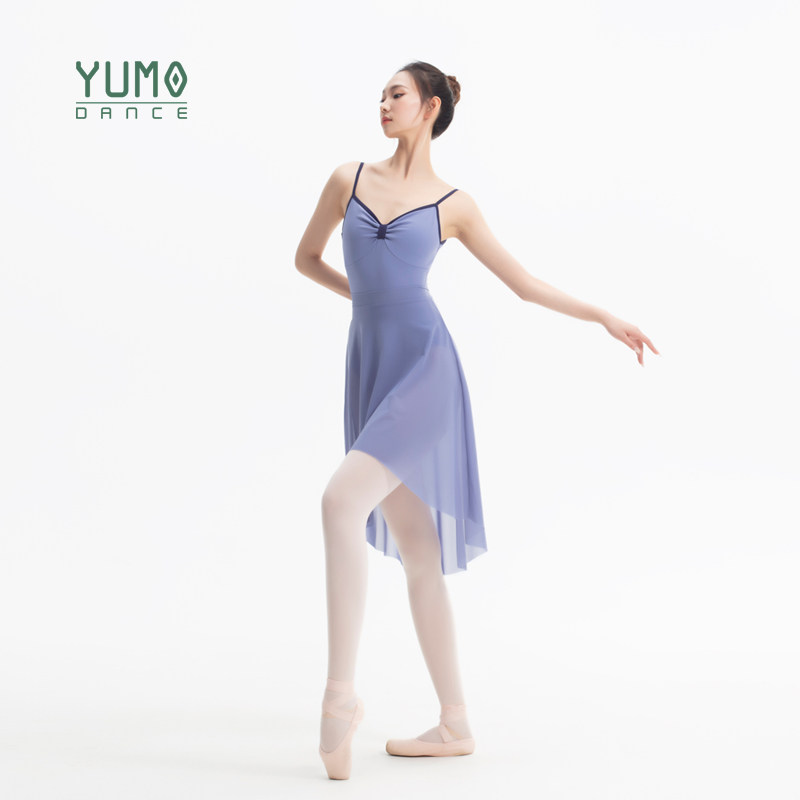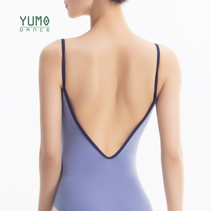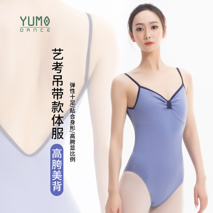 YUMO新款形体芭蕾舞练功服吊带前打结后大背包边大背连体服体操服