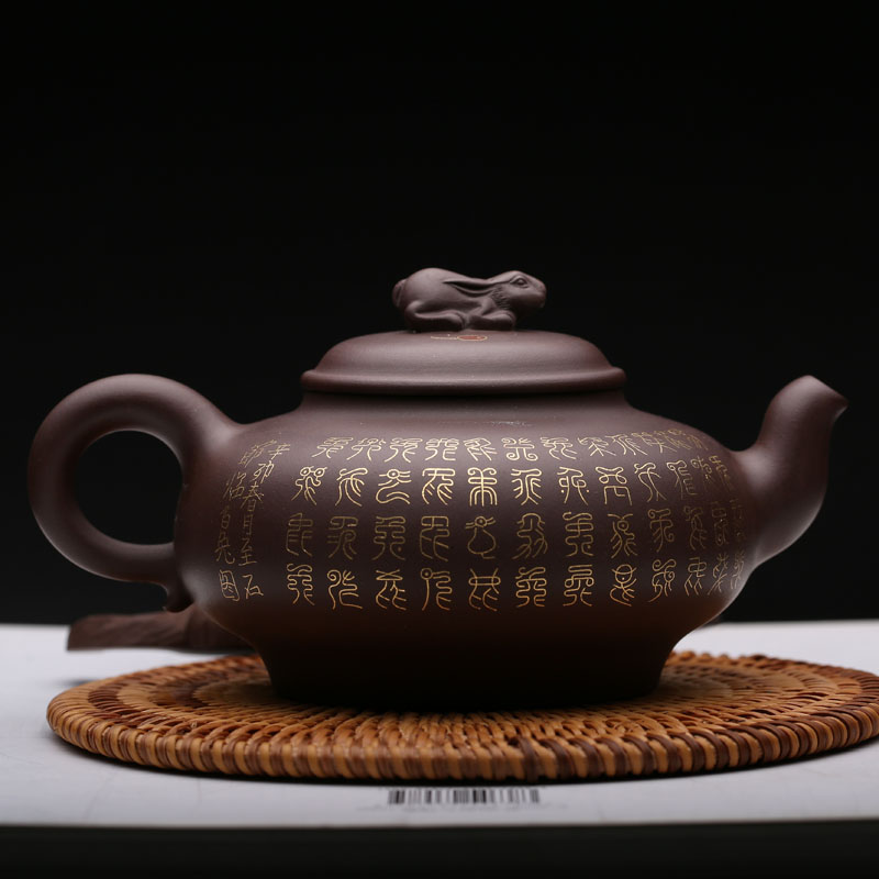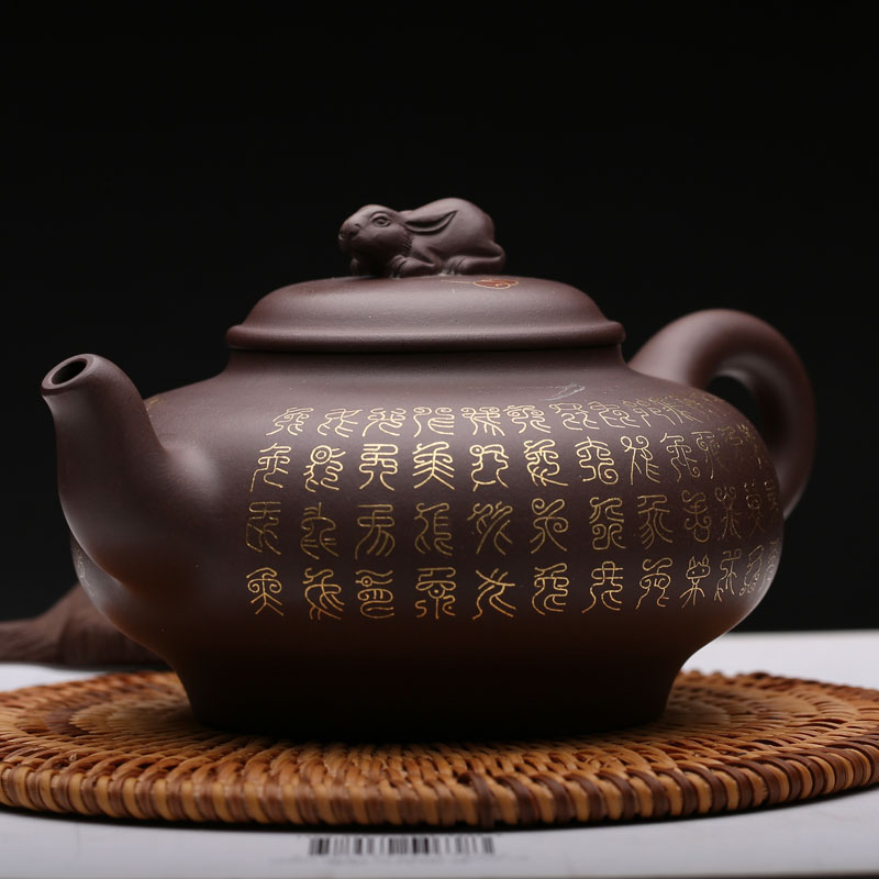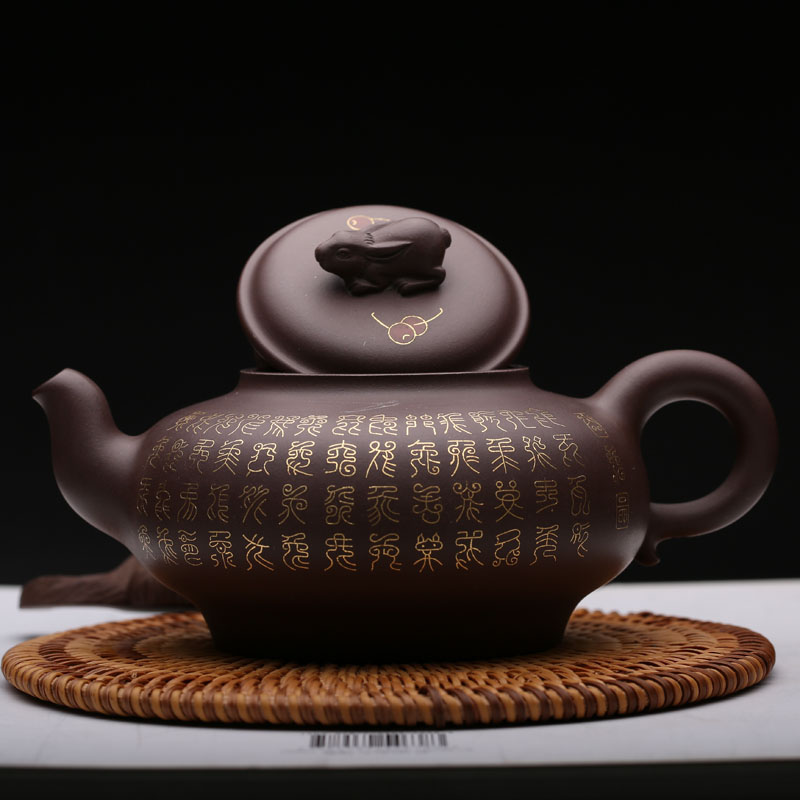 宜兴原矿全手工紫砂壶宋小华玉兔壶卡金丝紫砂茶壶340cc