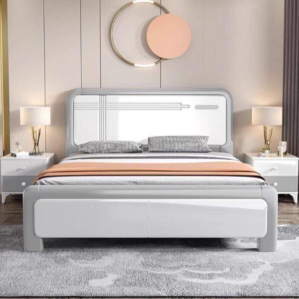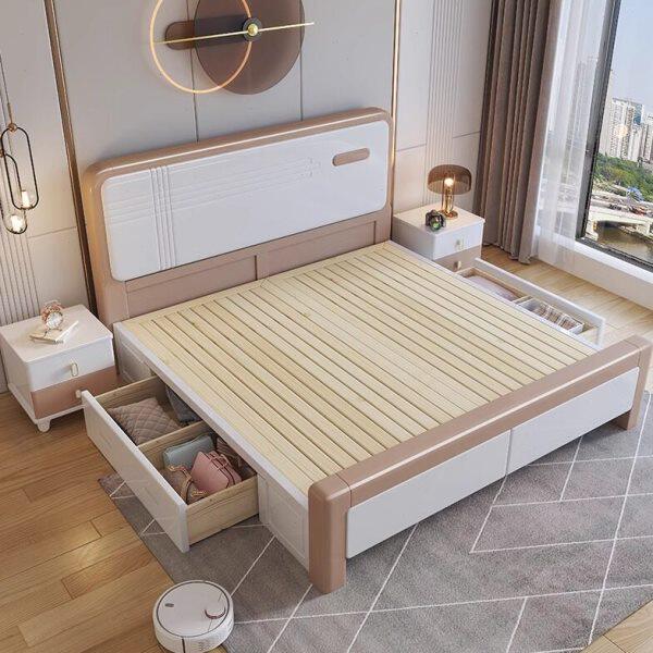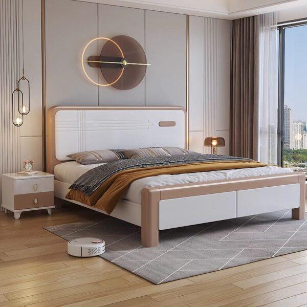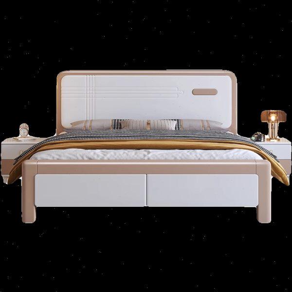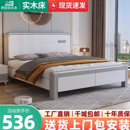 现代简约实木床1.8米主卧双人床1.5M单人经济型高箱储物大床