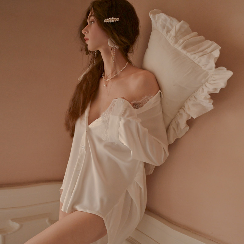 柠檬太太睡衣女纯欲风2026年款秋冬冰丝高级感男友风衬衫性感睡裙