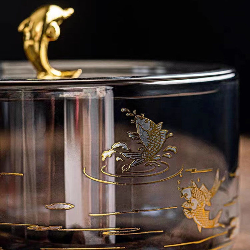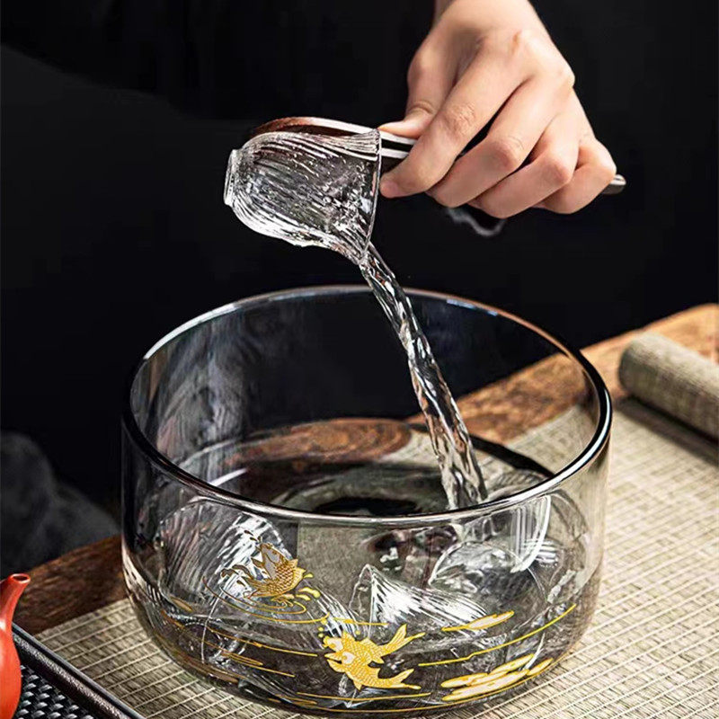 电陶炉专用玻璃茶洗带盖特大号消毒锅耐高温洗茶杯缸茶水盂简约款