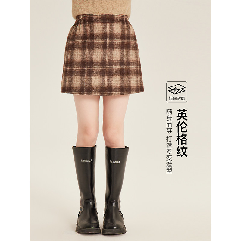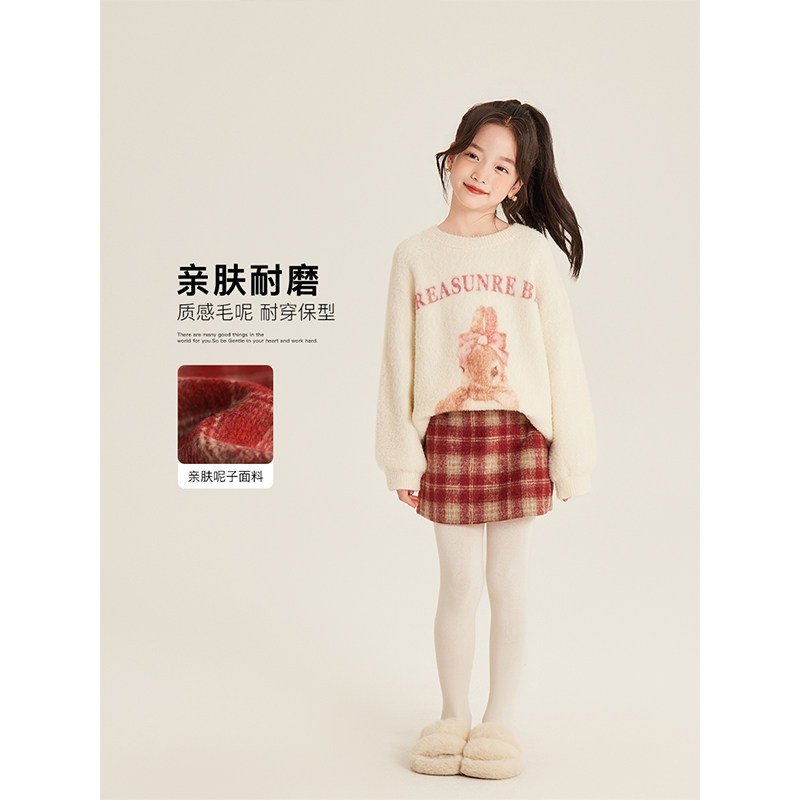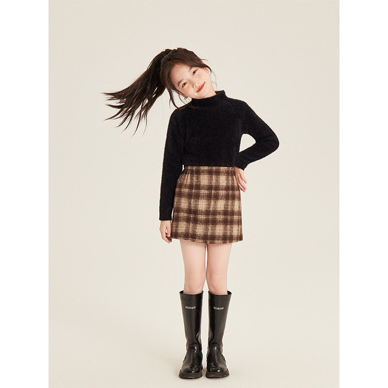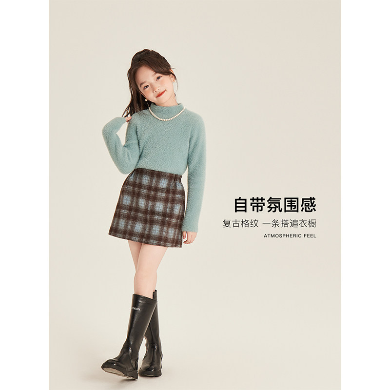 Amybaby女童裙子冬季2025新款高腰甜美百搭格纹包臀半身裙A字裙