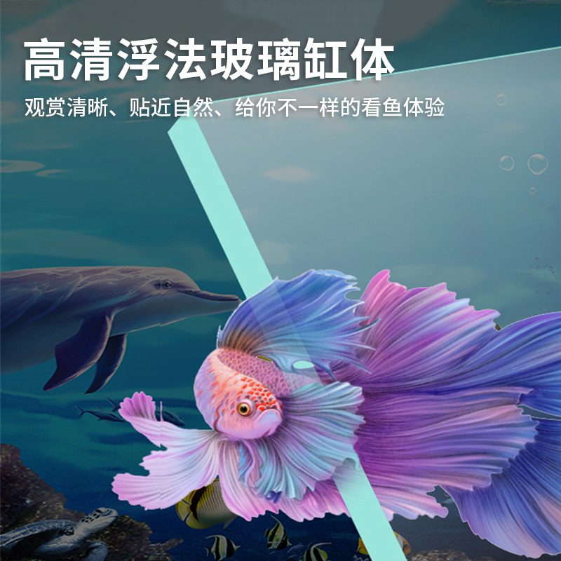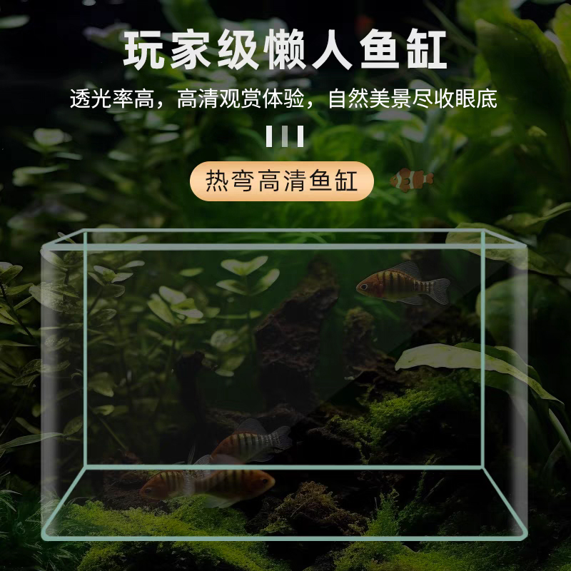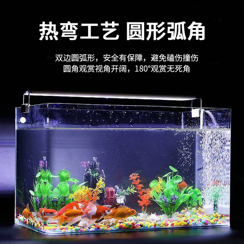 热弯玻璃鱼缸客厅桌面小型家用水族箱生态造景金鱼龟缸长方形裸缸