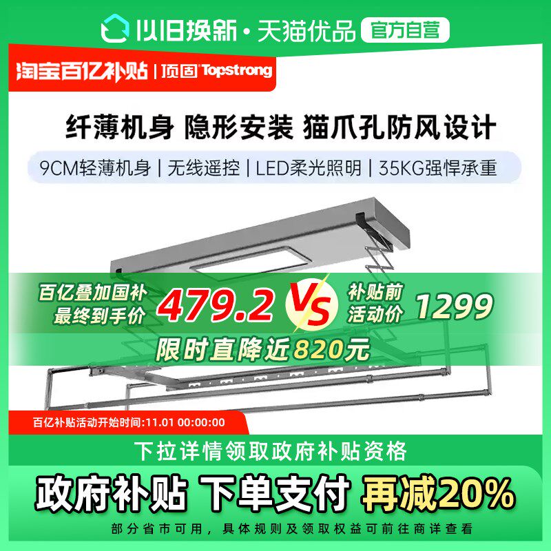 政府补免费安装顶固 晾衣架电动晾衣架超遥控猫抓设计