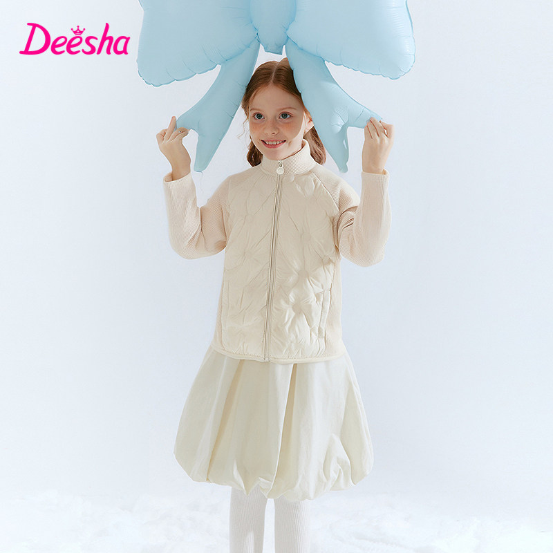 笛莎童装女童羽绒服2025冬季新款中大童女孩儿童拼接外套短款轻薄