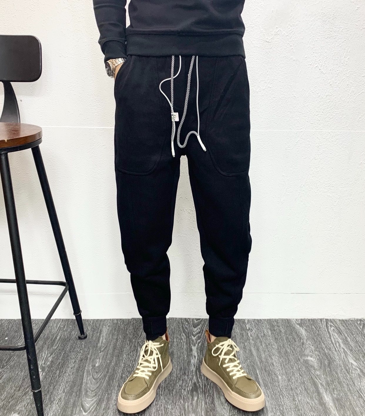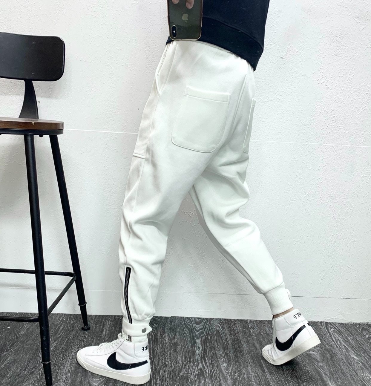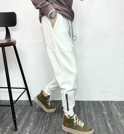 白色运动裤男士休闲裤子拉链束脚