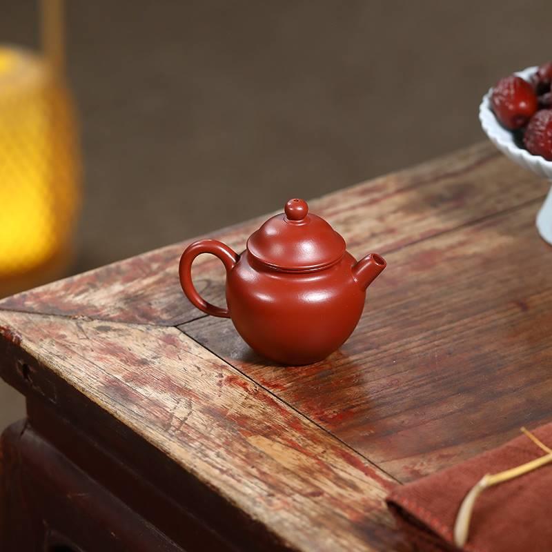 宜兴纯全手工紫砂壶朱泥大红袍球孔小容量龙蛋壶家用掇球壶泡茶壶