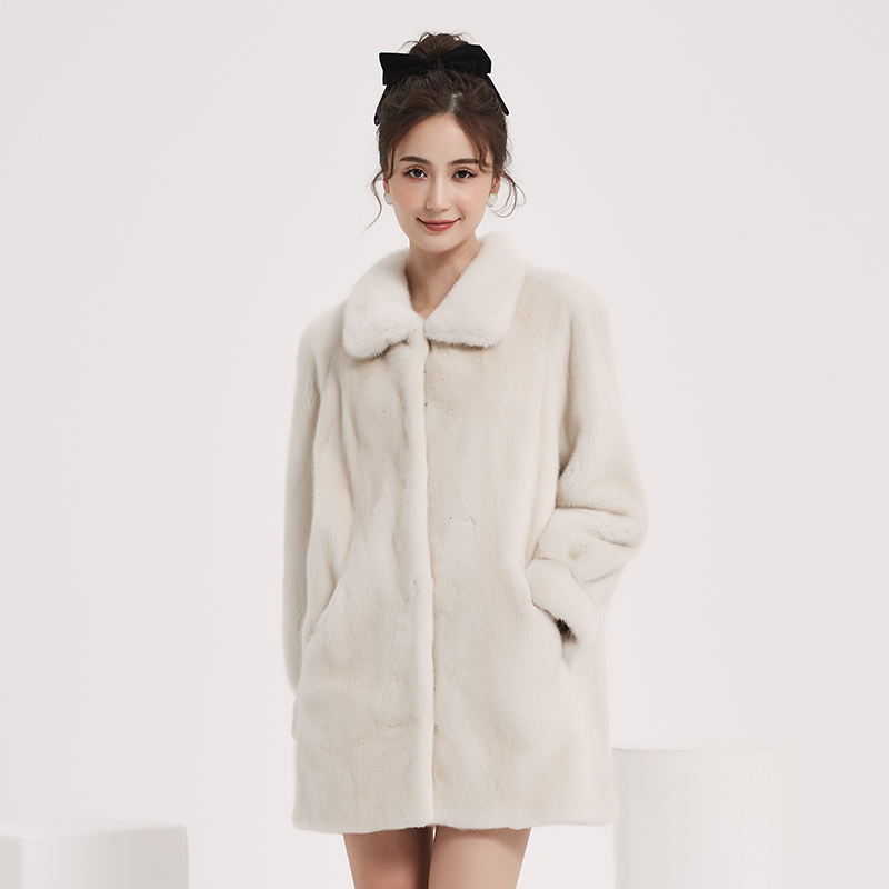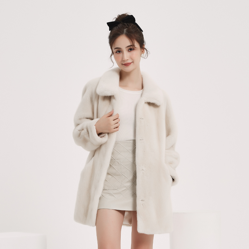 茉萱皮草进口紫标级天鹅绒水貂皮草整貂中长款翻领貂皮大衣女年轻
