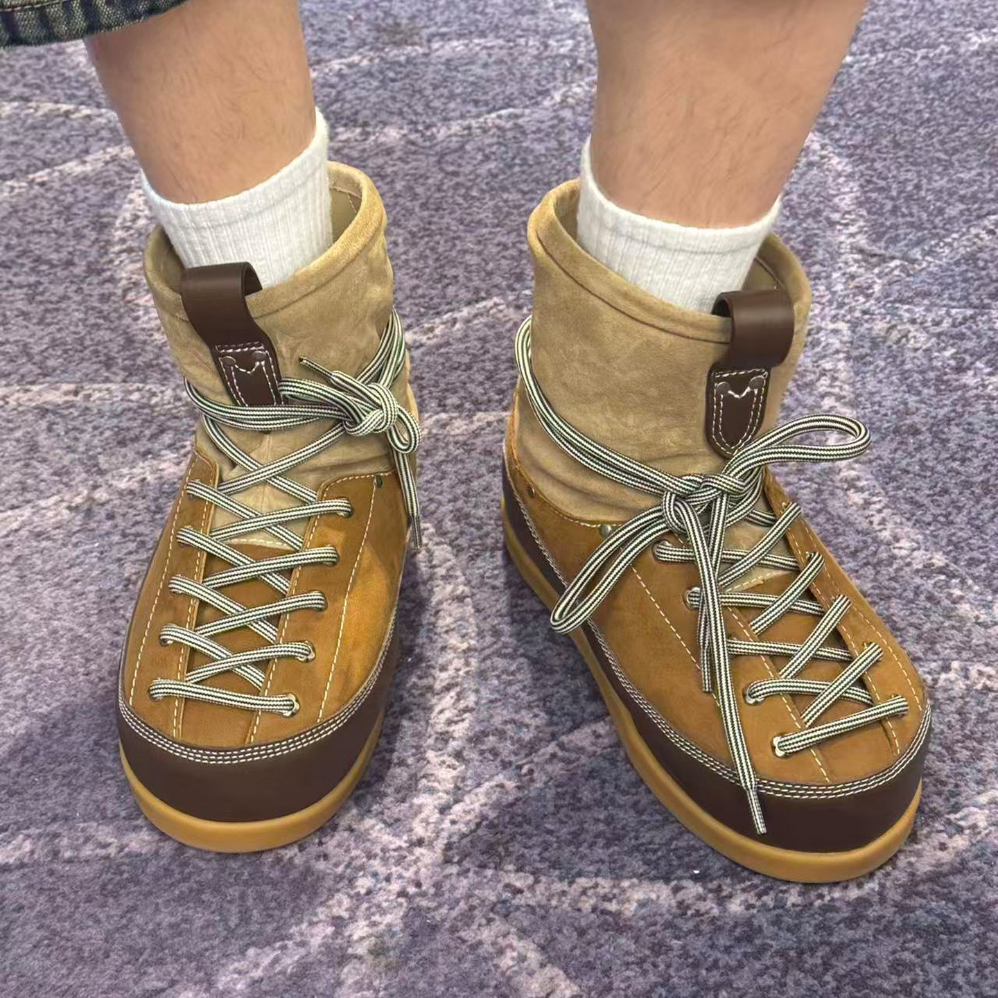 小胖丁新款面包雪地靴女秋冬加绒加厚保暖棉鞋厚底防滑皮面短筒靴
