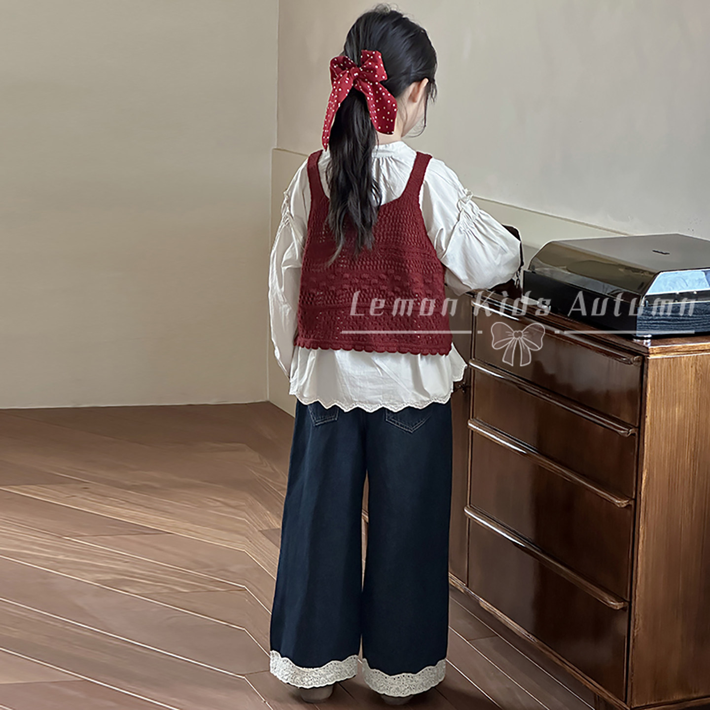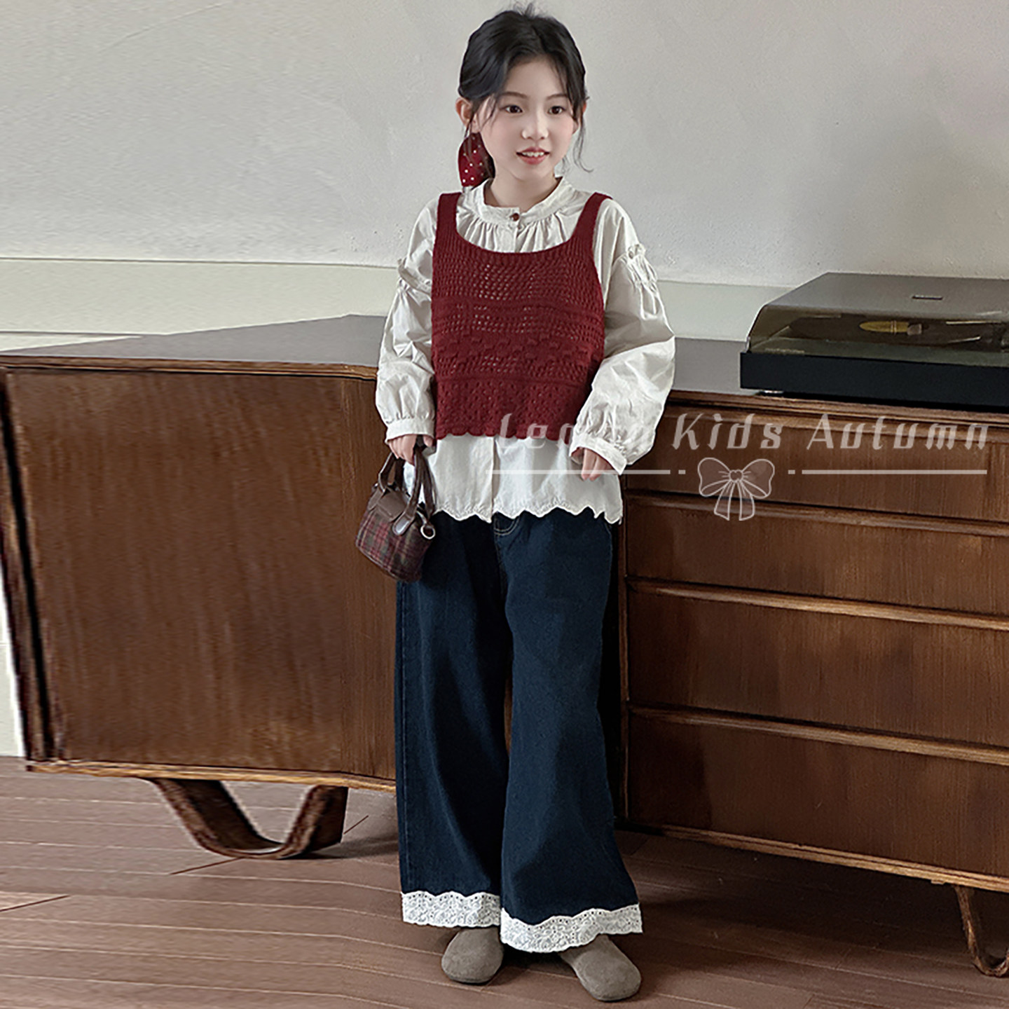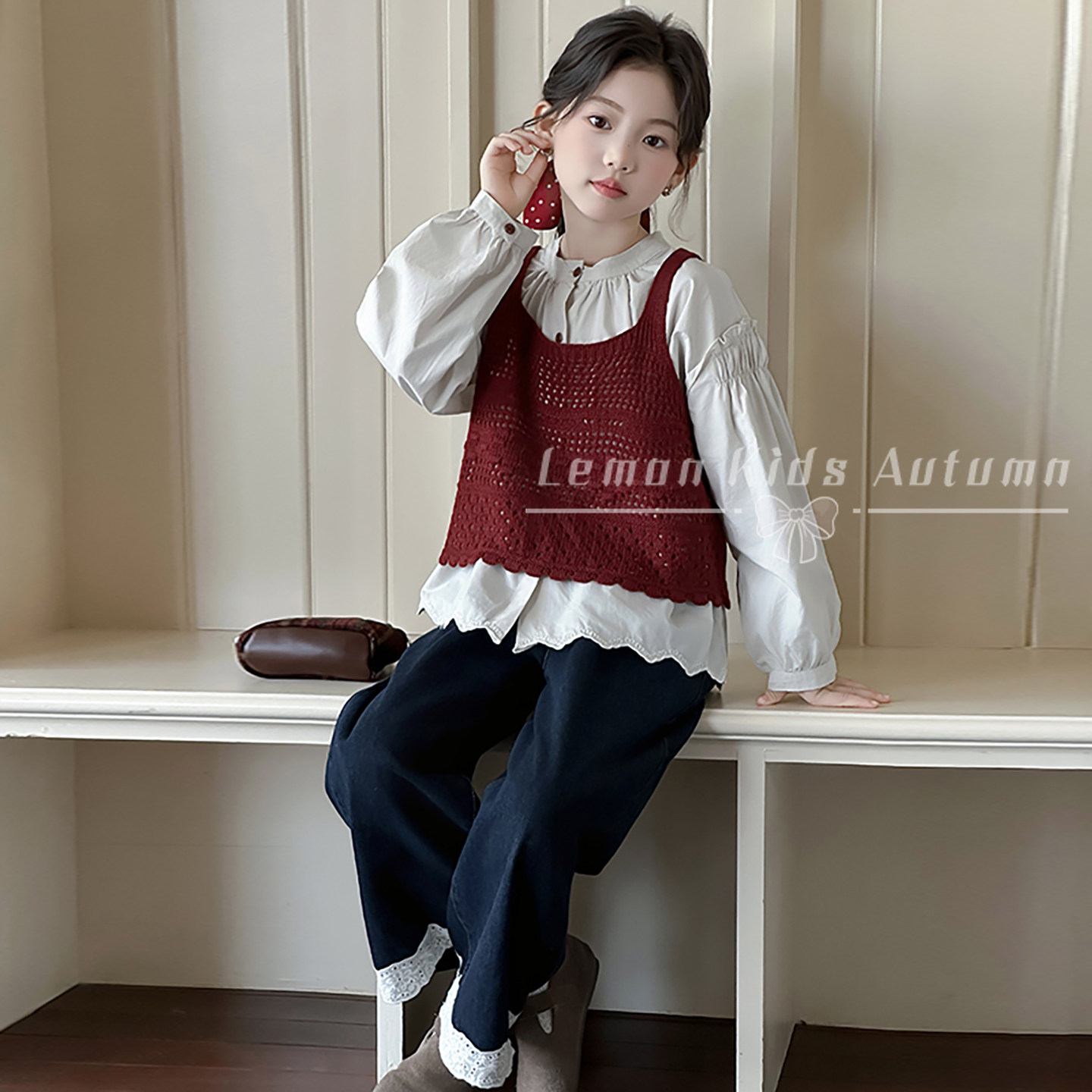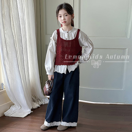 女童秋装套装2025新款洋气儿童装针织马甲上衣服春秋季叠穿三件套