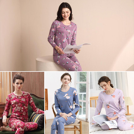 意大莱女士中老年加肥加大码保暖纯棉内衣套装秋衣秋裤棉毛衫大红