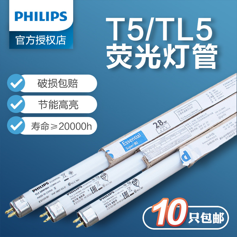 飞利浦T5日光灯管格栅灯T5荧光灯管TL5三基色14W/21W/28W黄光白光
