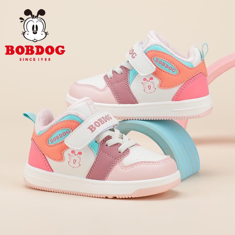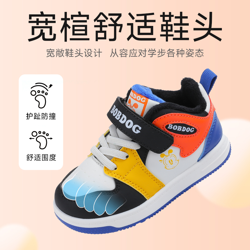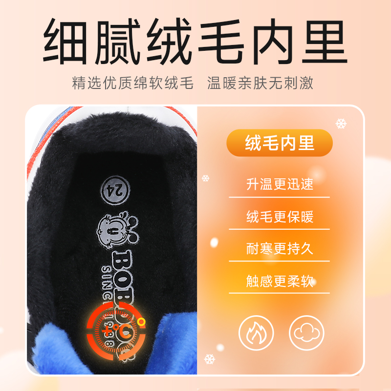 巴布豆童鞋男童鞋子秋冬款加绒鞋婴儿板鞋小童冬季鞋软底二棉鞋女