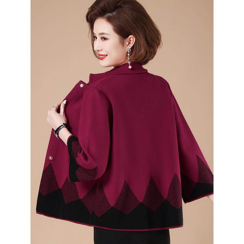 中年妈妈春装新款短外套七分袖风衣中老年人女装春秋针织开衫洋气