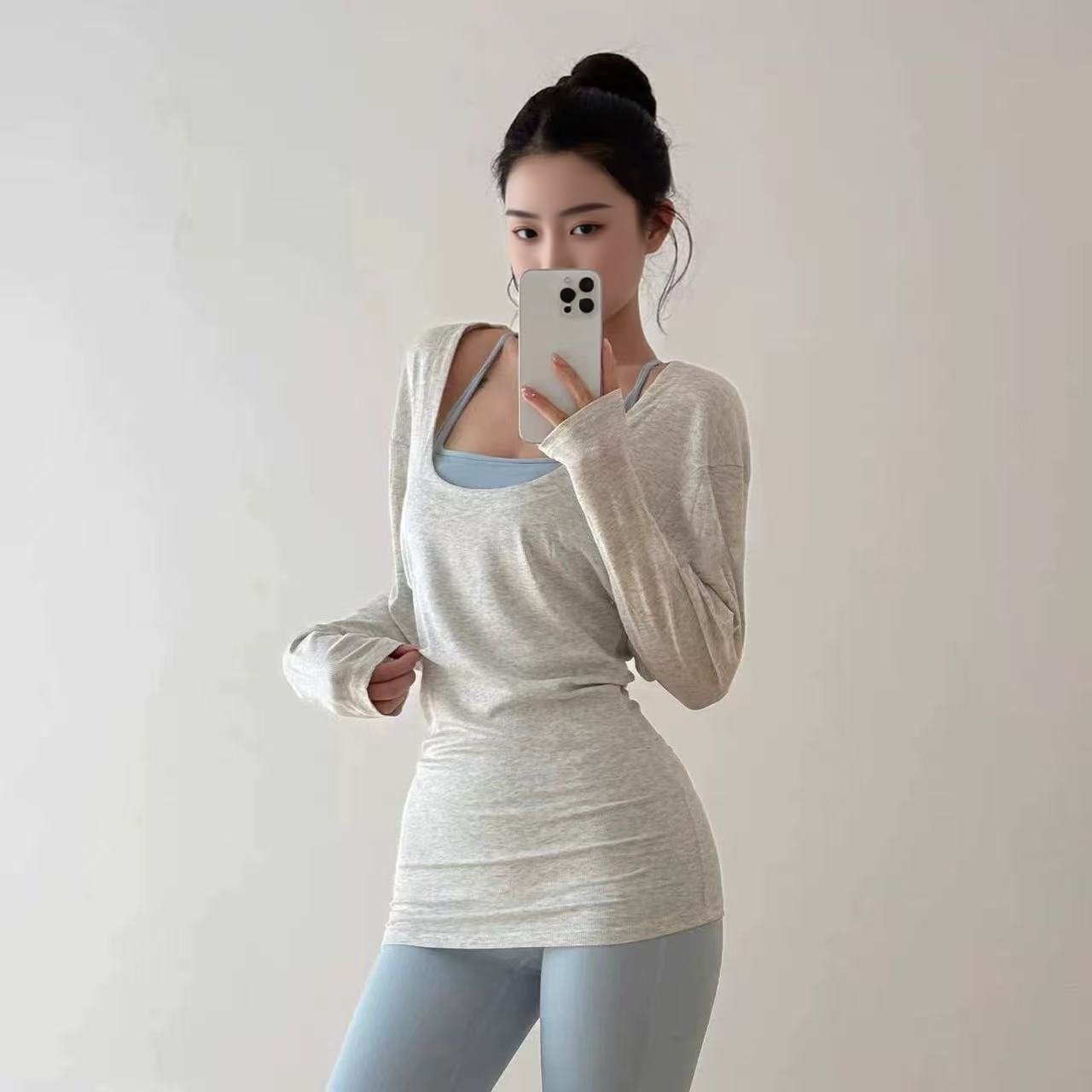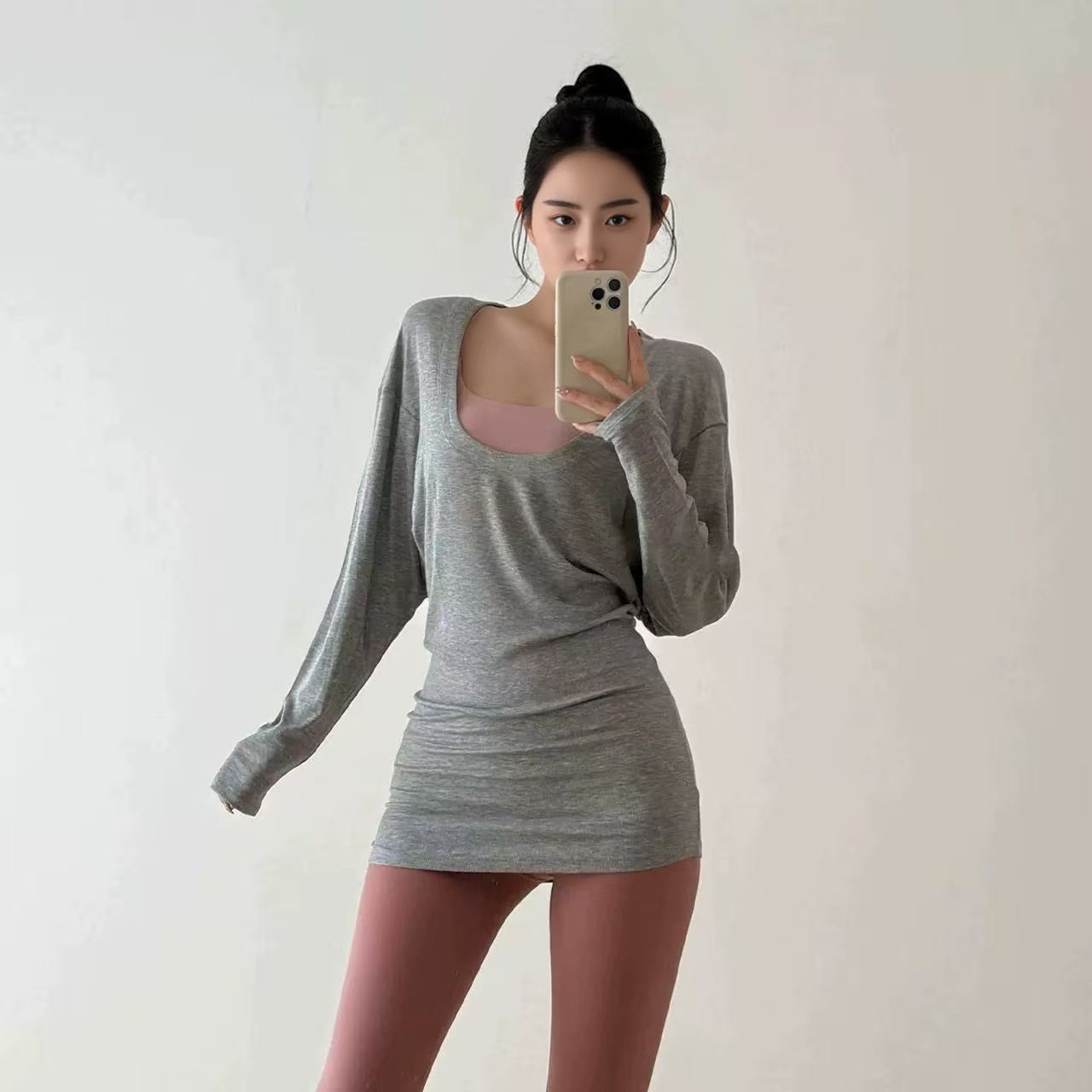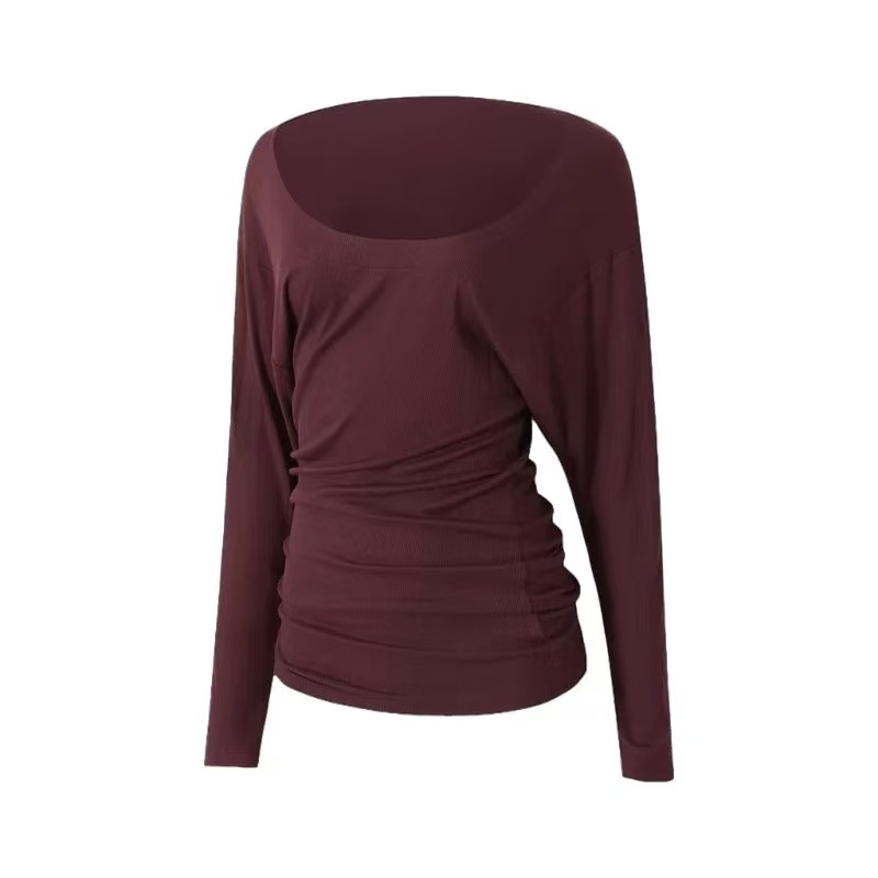时尚大U领遮臀长袖T恤运动健身服