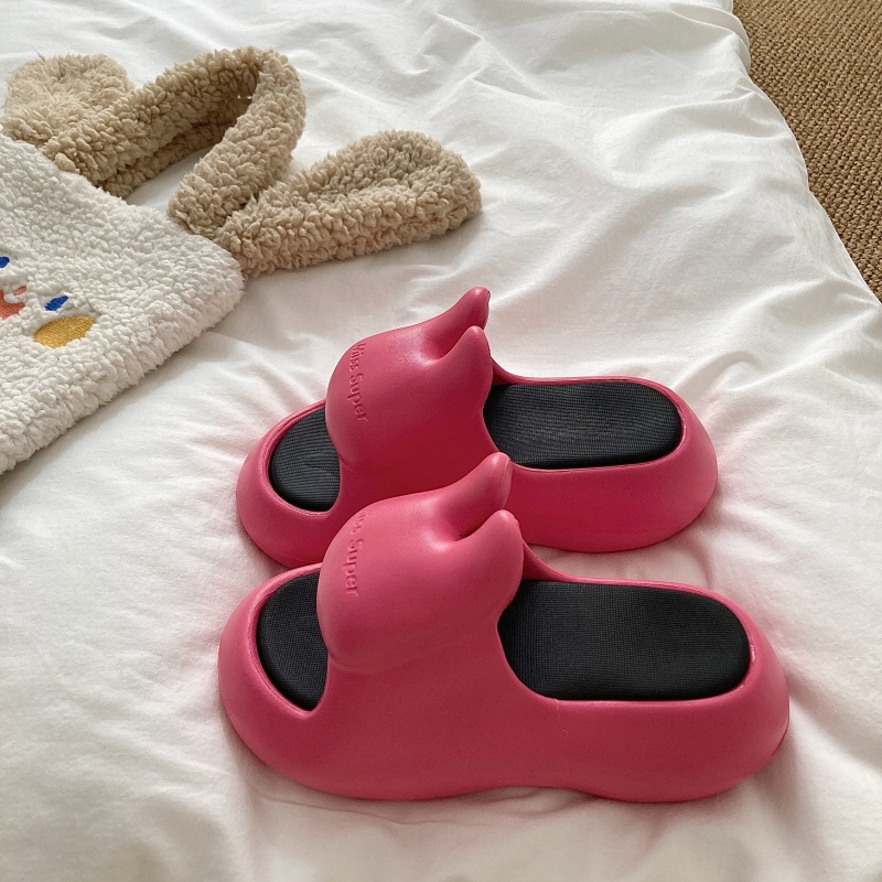 软萌奶兔~!大耳朵ins可爱外穿凉拖鞋女夏季厚底增高防滑一字拖鞋